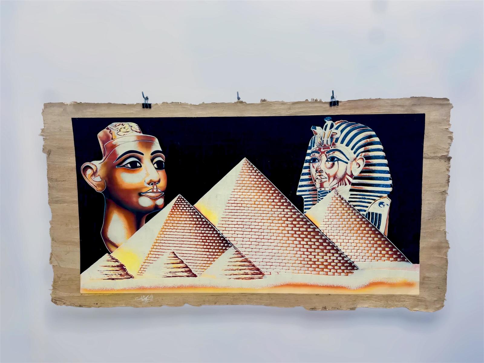 #brownpapyrus #antiquedpapyrus #ancientegyptian #papyruspainting #vintagepapyrus #glowinthedark #madeinegypt #handmadepapyrus #rarehandpainting #authenticleaves #uniqueart #limitededition #nefertitiandtut