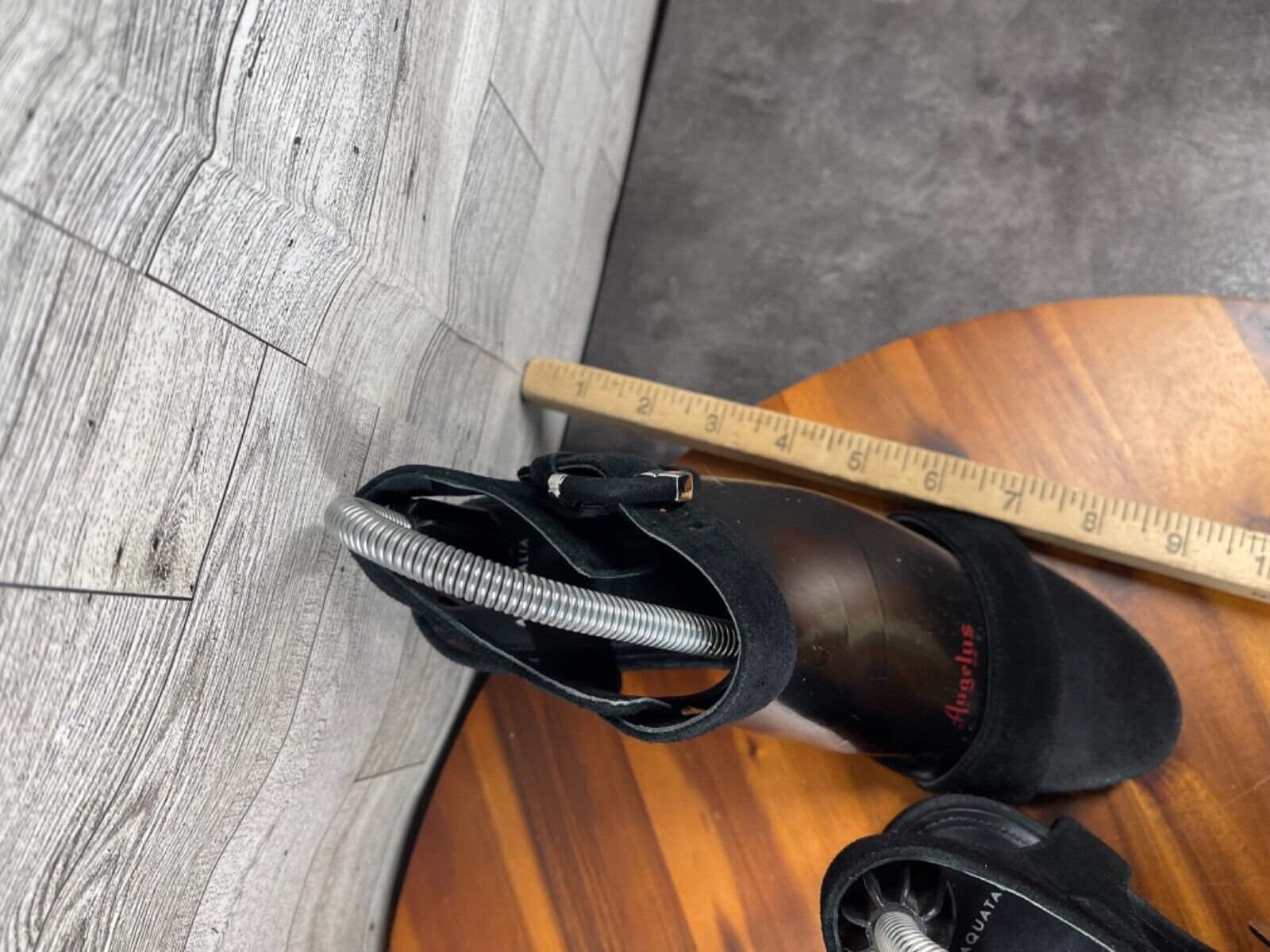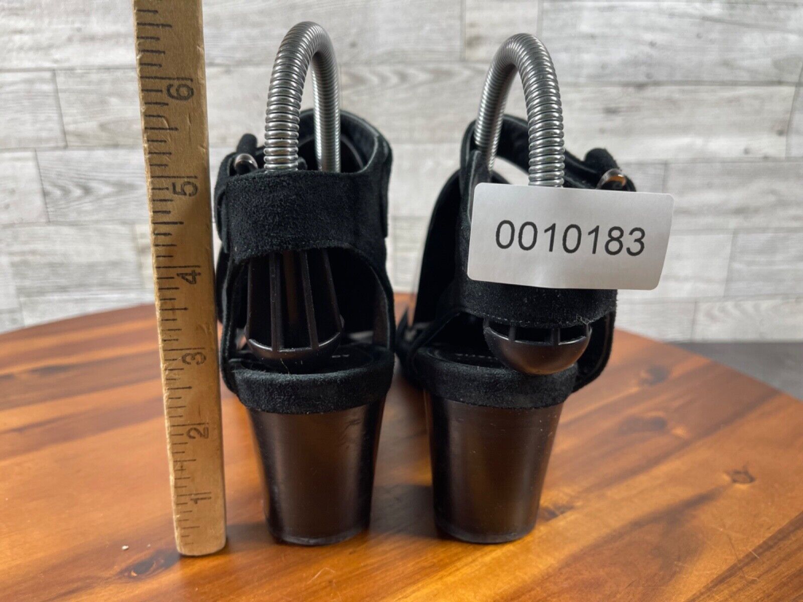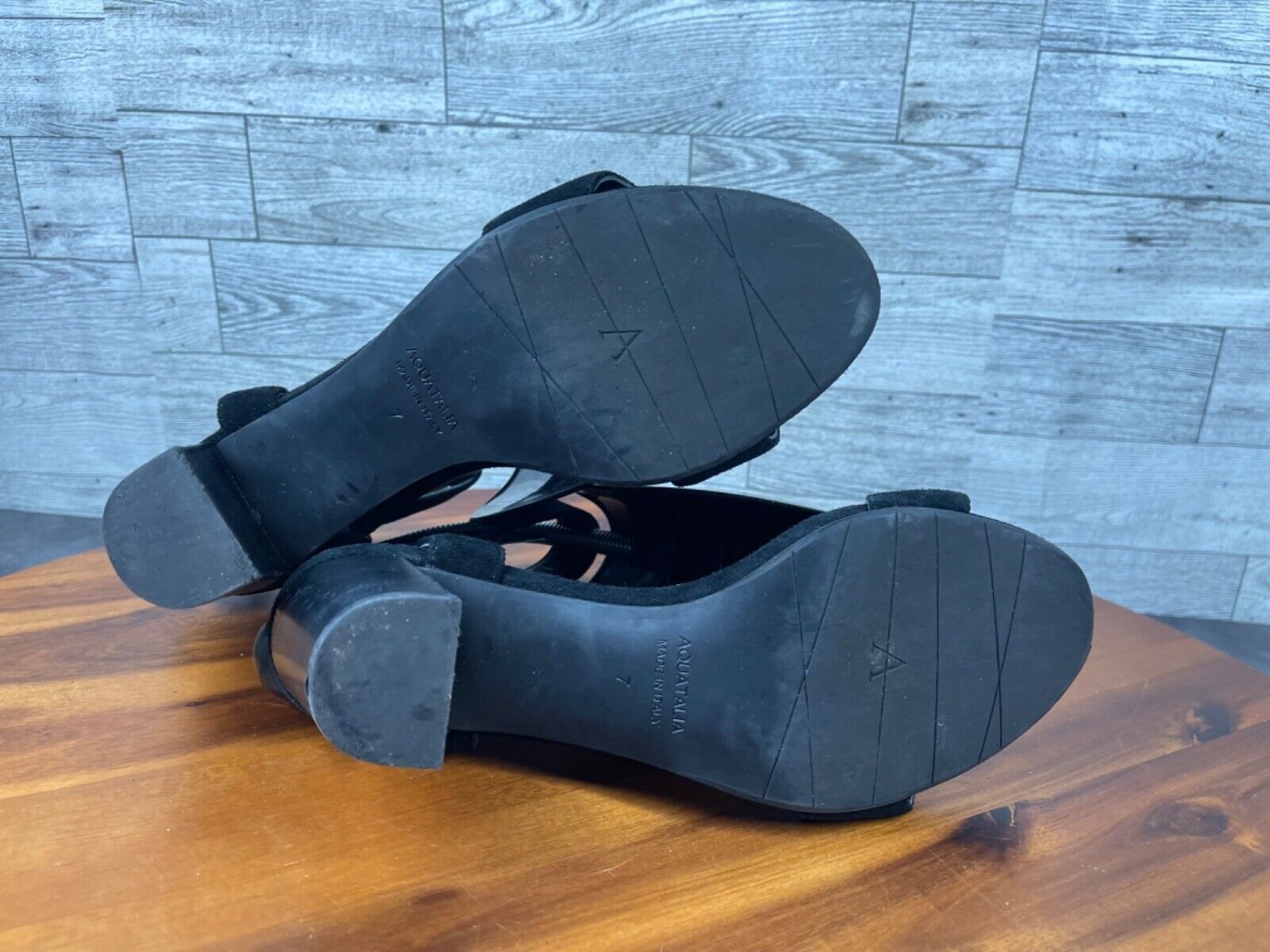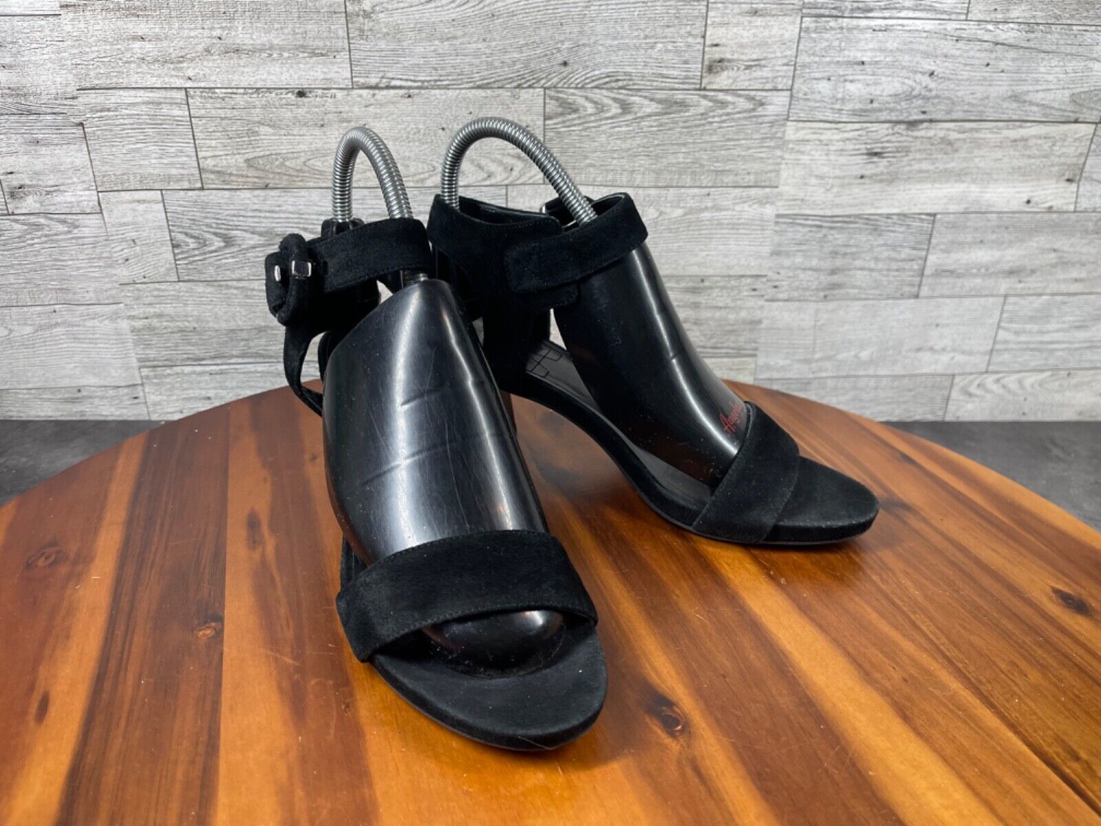 Aquatalia Sandals Women 7M Brenna Shoes Black Suede Block Heel Ankle Strap