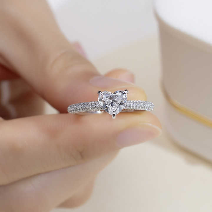925 Silver Heart Cut Moissanite Ring 925 Silver Solitaire Unique Engagement Ring