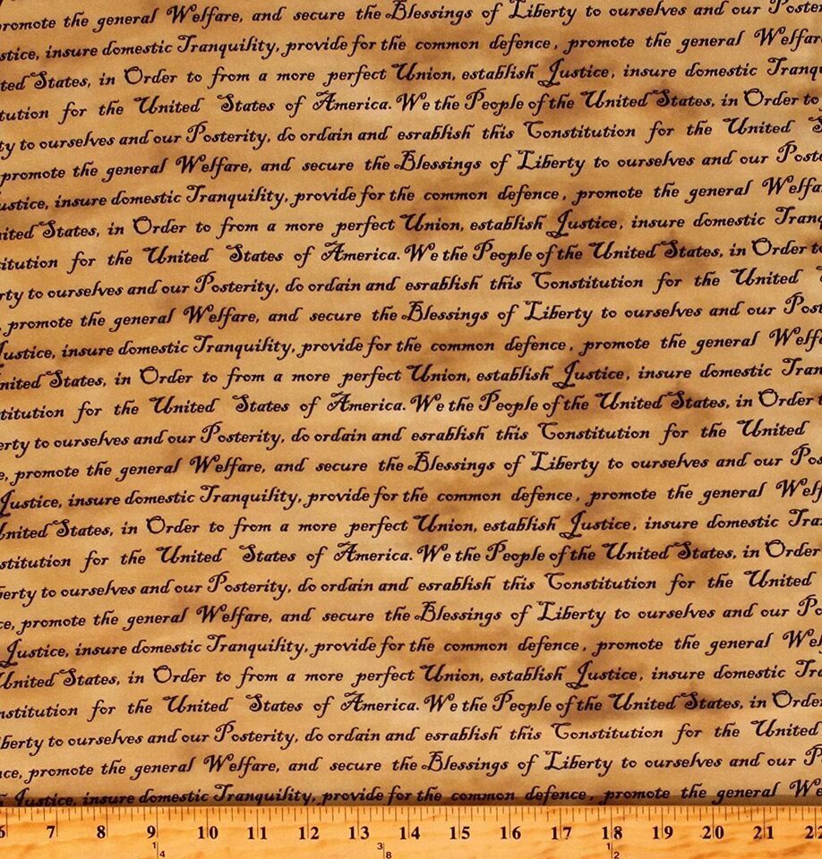 US Constitution Words Patriotic America Tan Cotton Fabric Print BTY D669.38