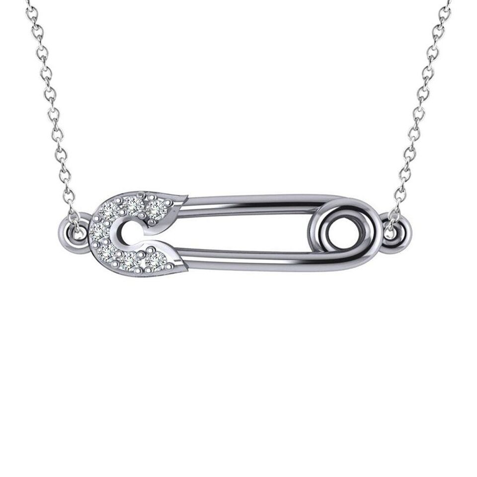 0.07ctw Round Lab Created Diamond Safety Pin Pendant With Chain 14K White Gold