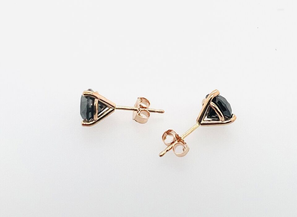 14K Fine Rose Gold Round Black Diamond 3 Prong Martini Stud Earrings 2.65ctw