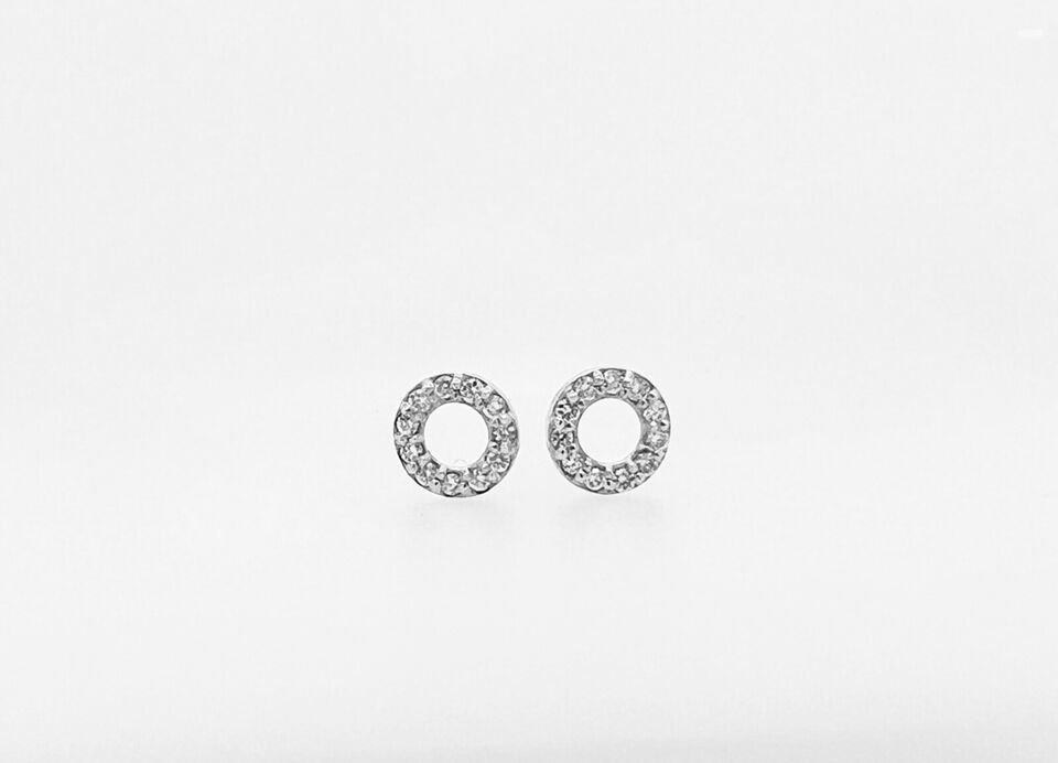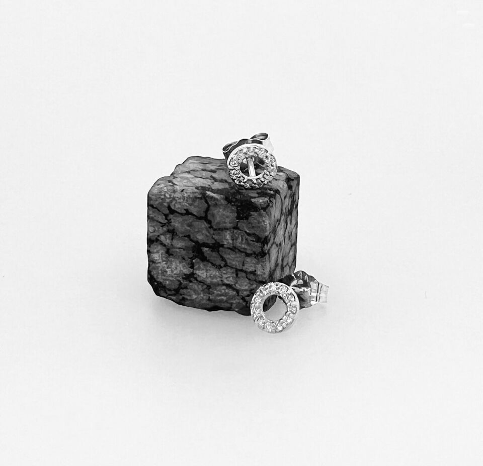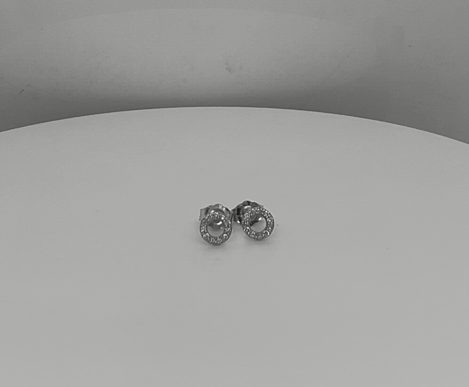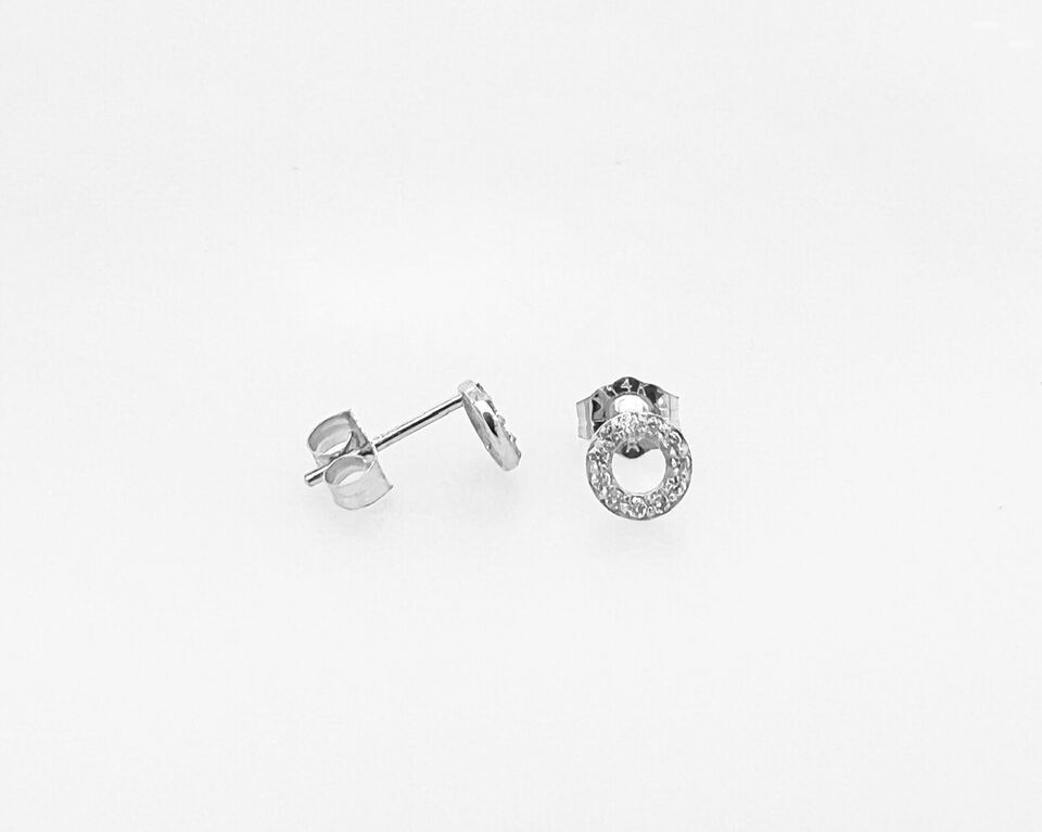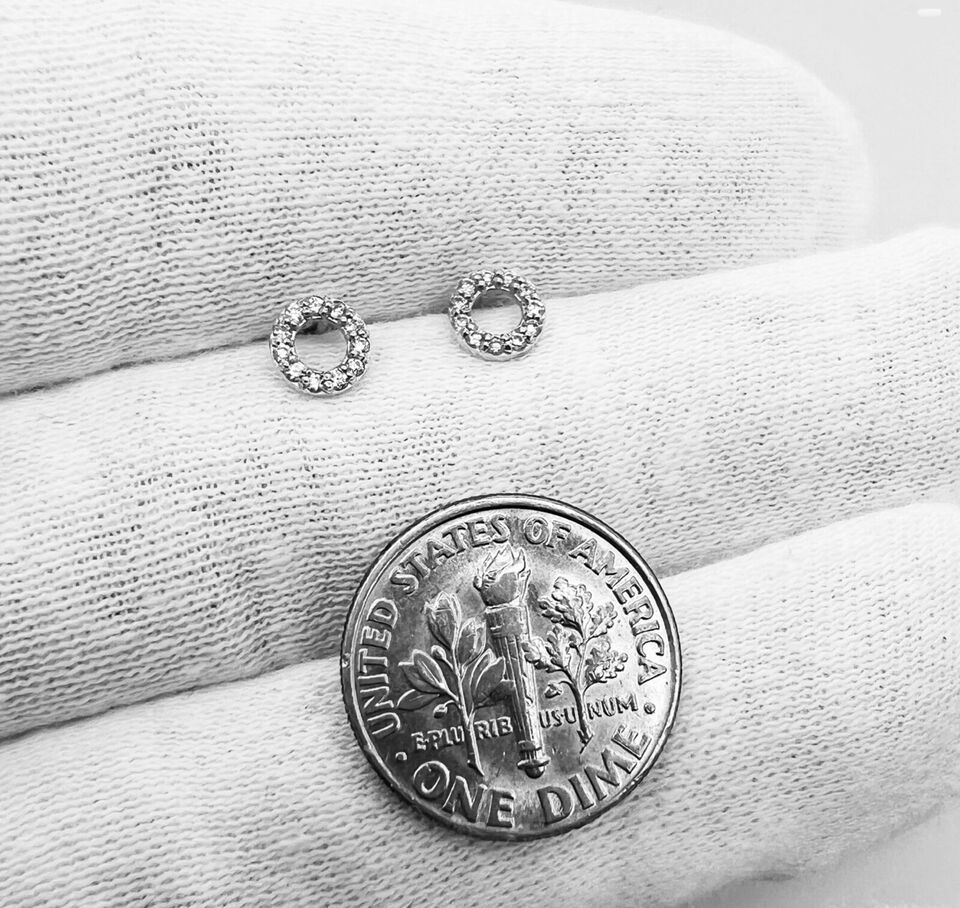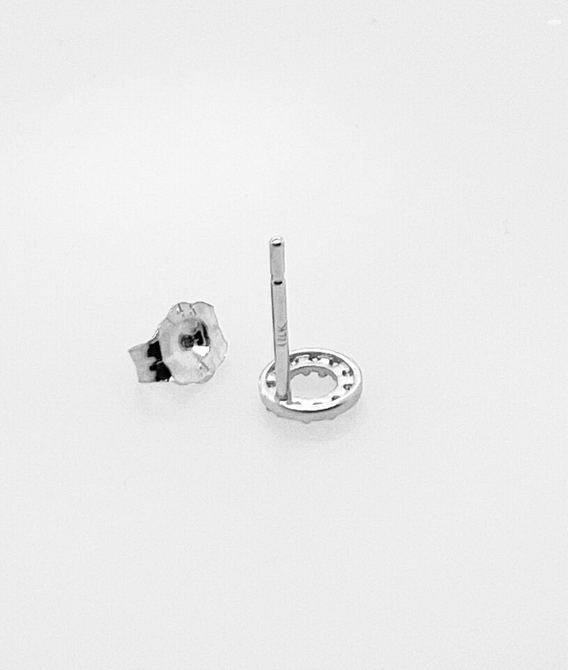 14K White Gold Round Natural Diamond Circle Push Back Stud Earrings 0.11ctw
