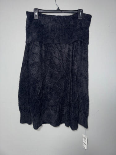 MSRP $80 INC Wide-Neck/Off the Shoulder Eyelash Fuzzy Sweater Black Size Large