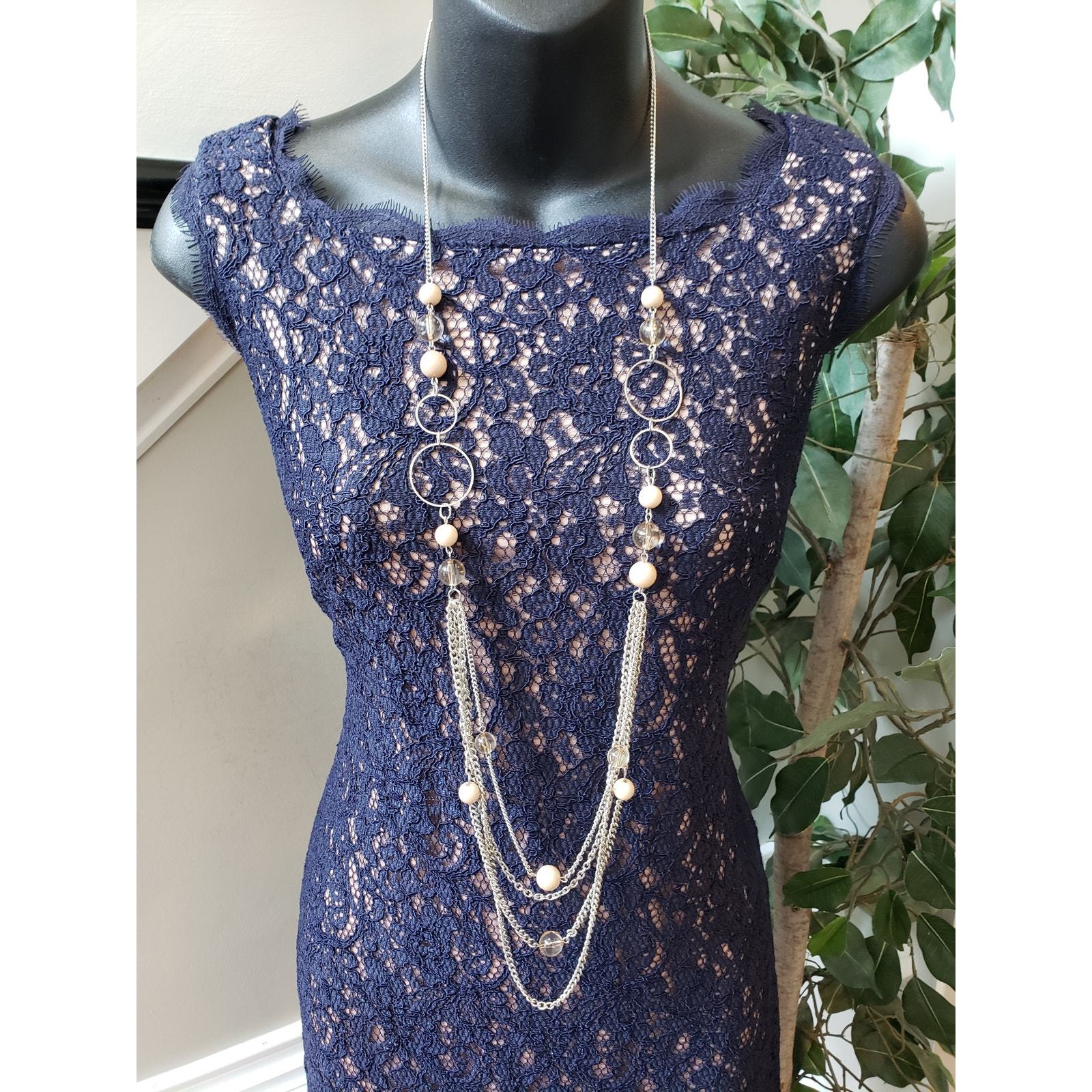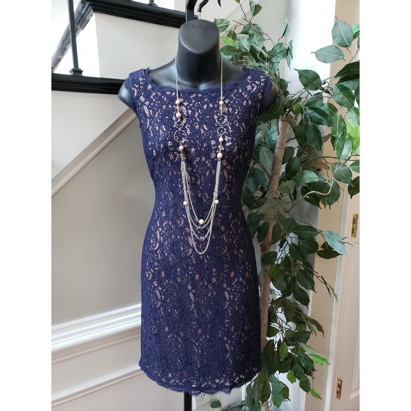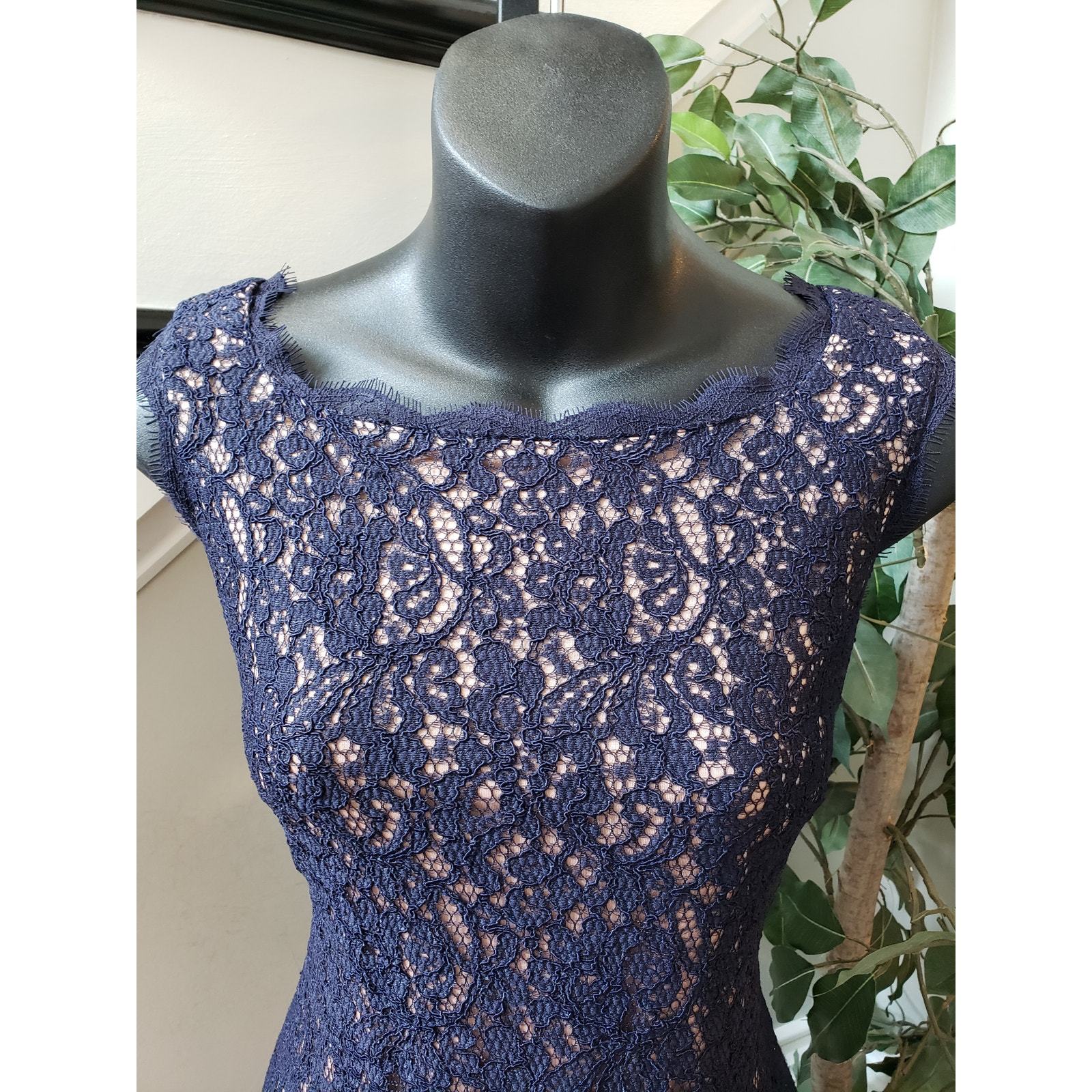Adrianna Papell Fit & Flare Dress Women's 6 Blue Round Neck Sleeveless Back Zip