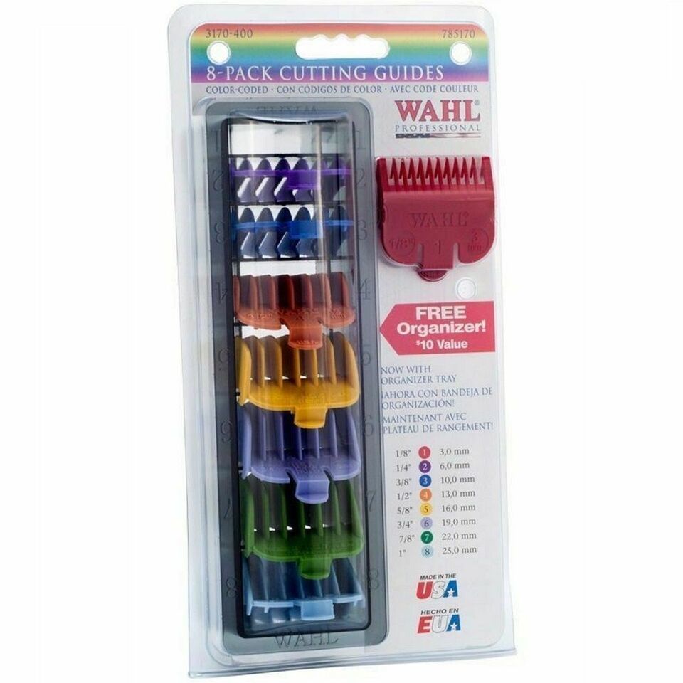 You are Buying a brand New And Factory Sealed Wahl Professional 8 Color Coded Cutting Guides with Organizer #3170-400 - Great for Professional Stylists and Barbers - Cutting Lengths from 1/8? to 1?.