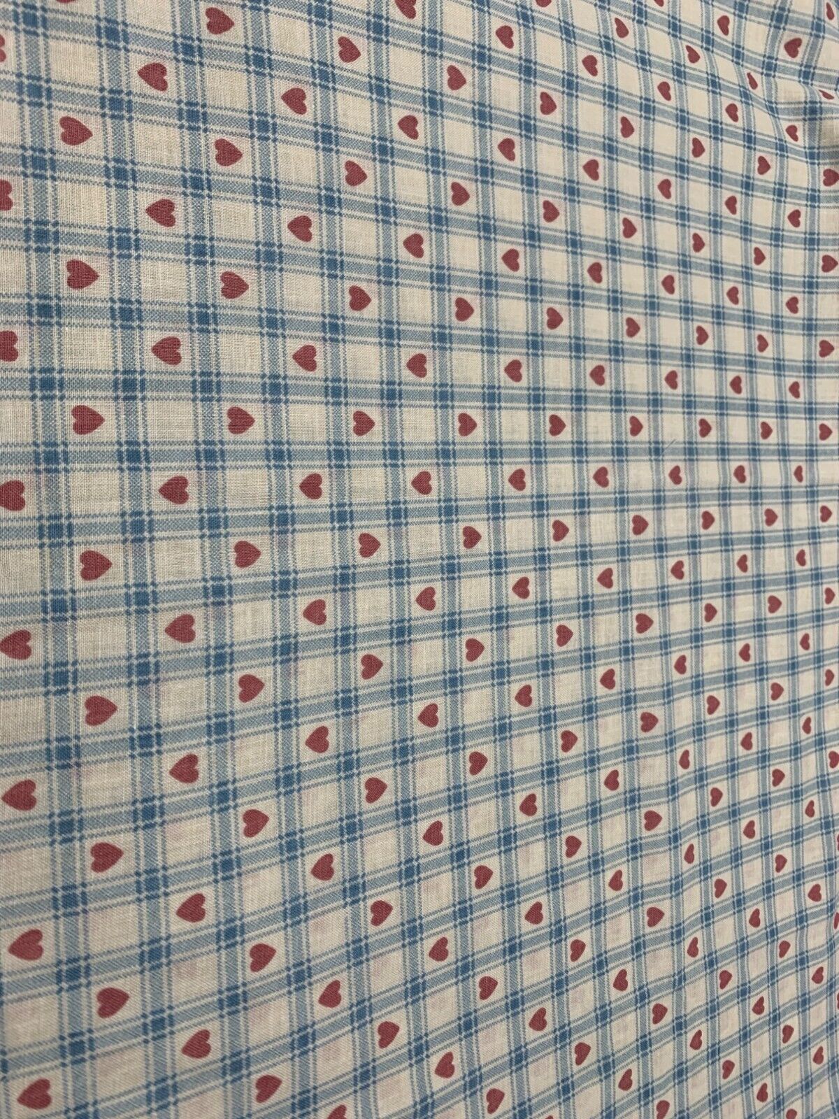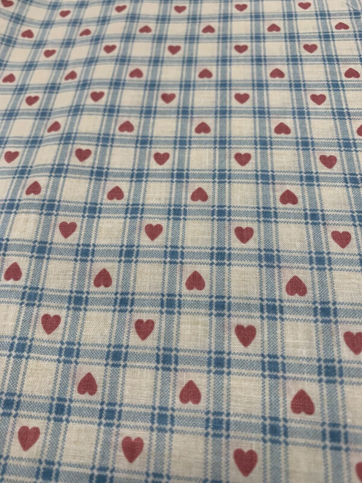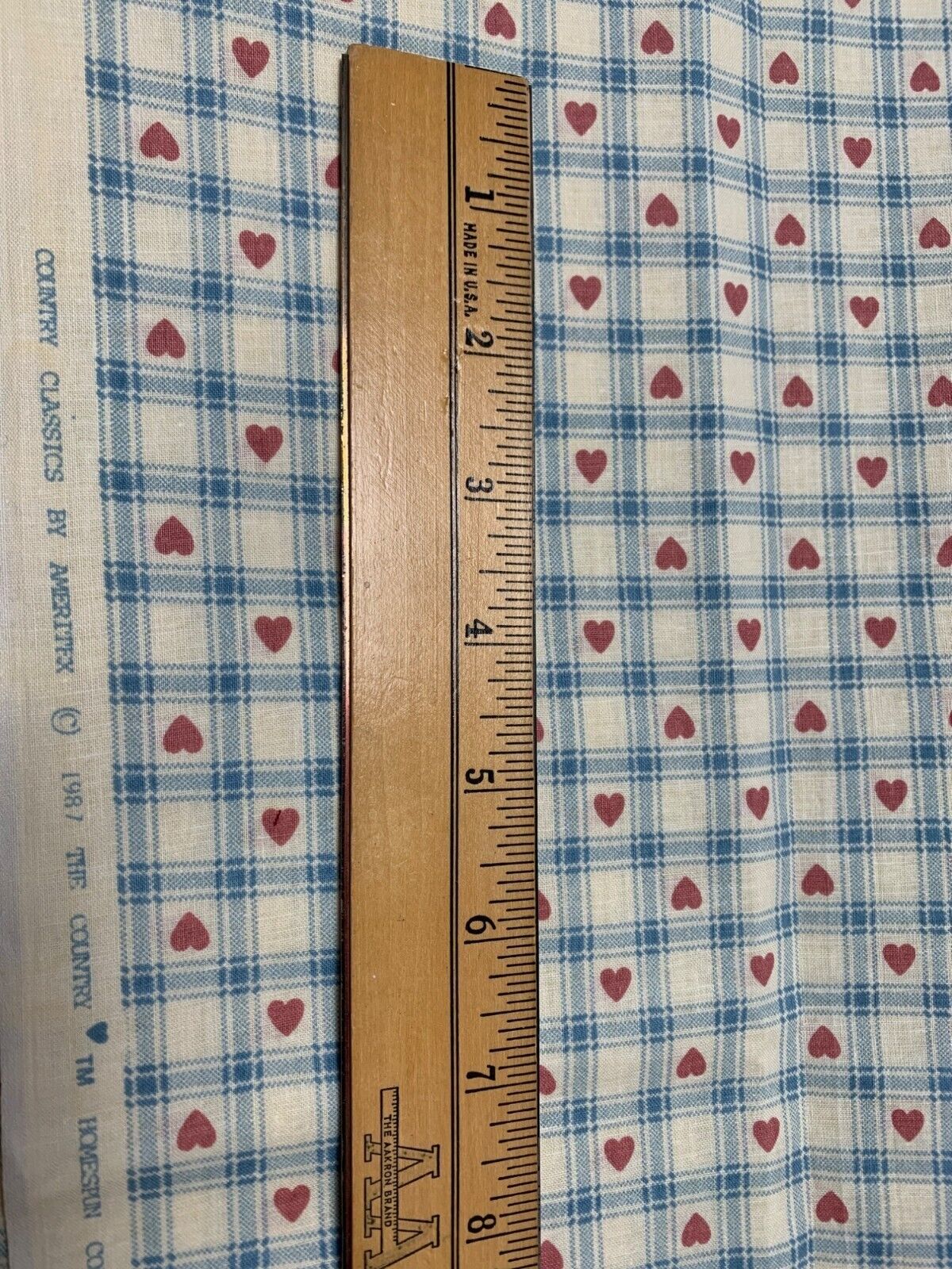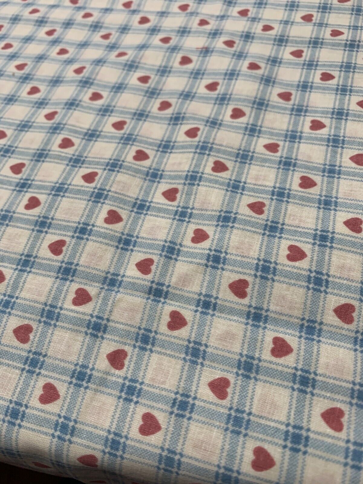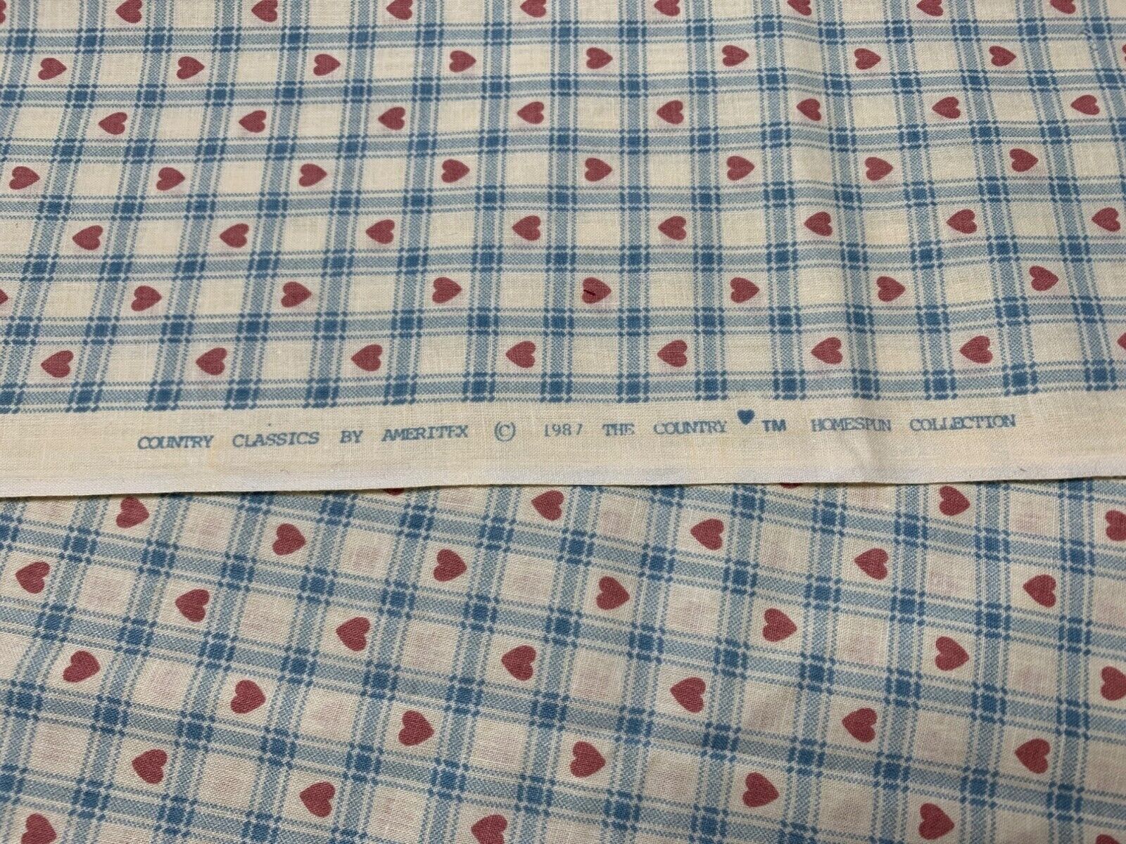 vintage fabric, pink hearts, blue plaid, sewing material, country style, cotton fabric, quilting fabric, craft supplies, homespun collection, Ameritex, fabric by yard, 1987 fabric, DIY projects