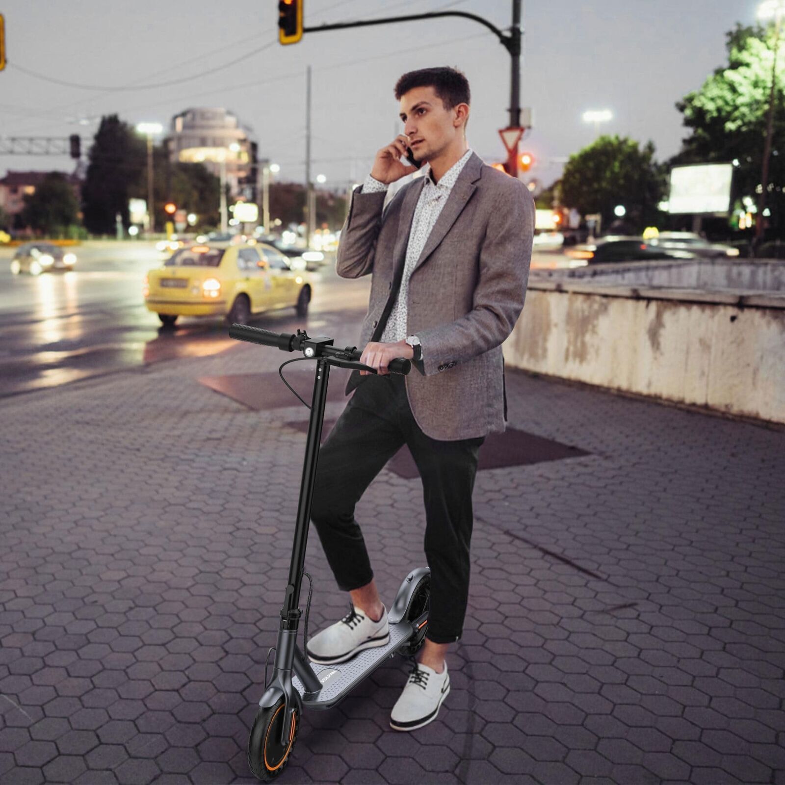 VOLPAM Electric Scooter, 350W/500W Motor, Max 21-28 Miles Range, 19/21 Mph Top Speed, 8.5''/10'' Tires, Dual Braking, Kick Scooter, 2 Wheels and Height Handlebars (20Miles-350W)