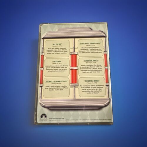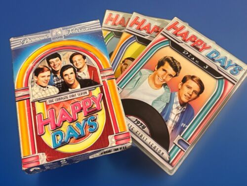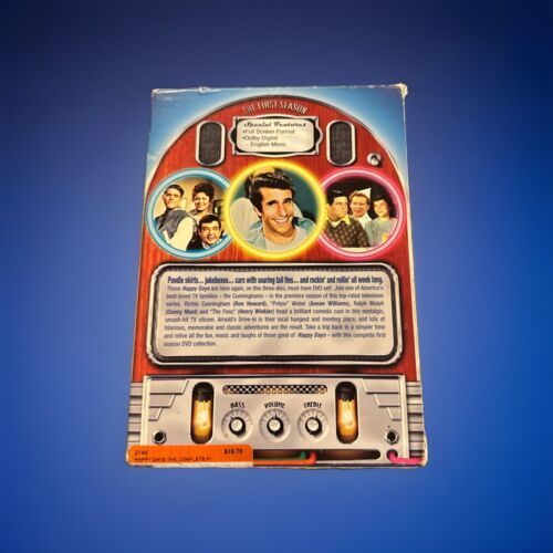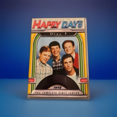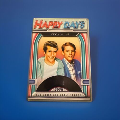 The product is the DVD box set of "Happy Days: The Complete First Season," released in 2004 by Paramount. The TV series falls under the genre of TV Comedy and features actor Henry Winkler in the cast. Directed by Art Fisher, George Tyne, and Joel Zwick, the season includes additional scenes and is presented in English language. Produced by Bob Brunner, this 3-disc set captures the nostalgic charm of the show's first season, offering viewers a trip back to the 1970s with the beloved characters and memorable moments of "Happy Days."Please look at our store for unique collectibles and quality vintage items.