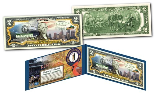 See the U.S.A. as never before with the All-New U.S. $2 Statehood Bills Currency Collection, a spectacular presentation. This all-new collection of Statehood $2 Bills honors each of our 50 states, and comes packaged in a premium display folio that shows both your States bill and the highly customized official States Certificate of Authenticity. You'll enjoy glimpses of each state's most fascinating sights, symbols, and stunning natural beauty; adding to the effect, the custom artwork also includes imagery inspired by the collector-favorite State Quarters and U.S. Parks. Discover breathtaking American beauties with a rare currency collection that also honors our national parks with brilliant color. While $2 Bills are genuine U.S. legal tender, they make up fewer than 1% of all currency produced today, and these rarely-seen bills are coveted collector favorites. The reverse of each statehood bill features the famous depiction of the signing of the Declaration of Independence. Your bills arrive in crisp Uncirculated Condition. Celebrate these magnificent works of art of America's history.
