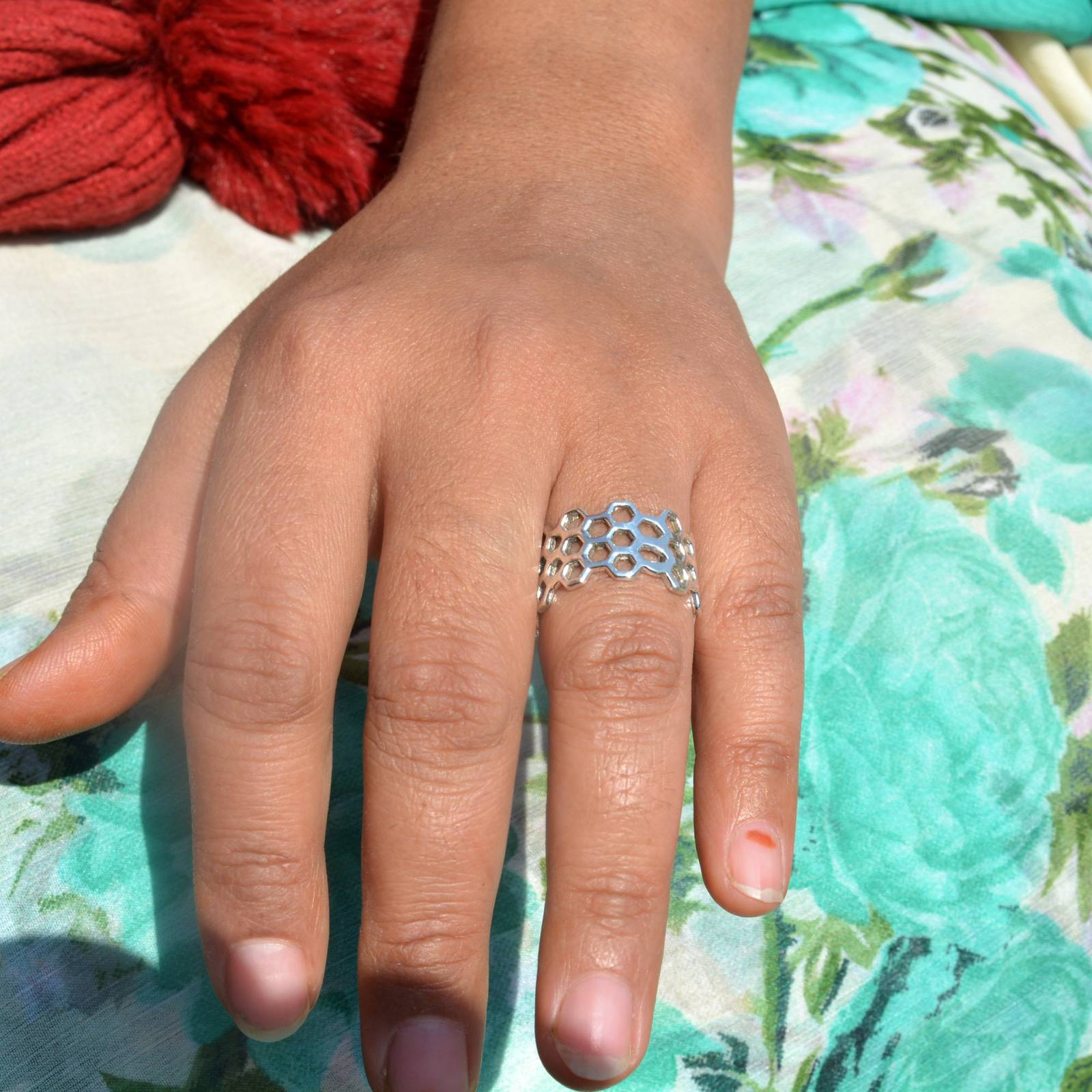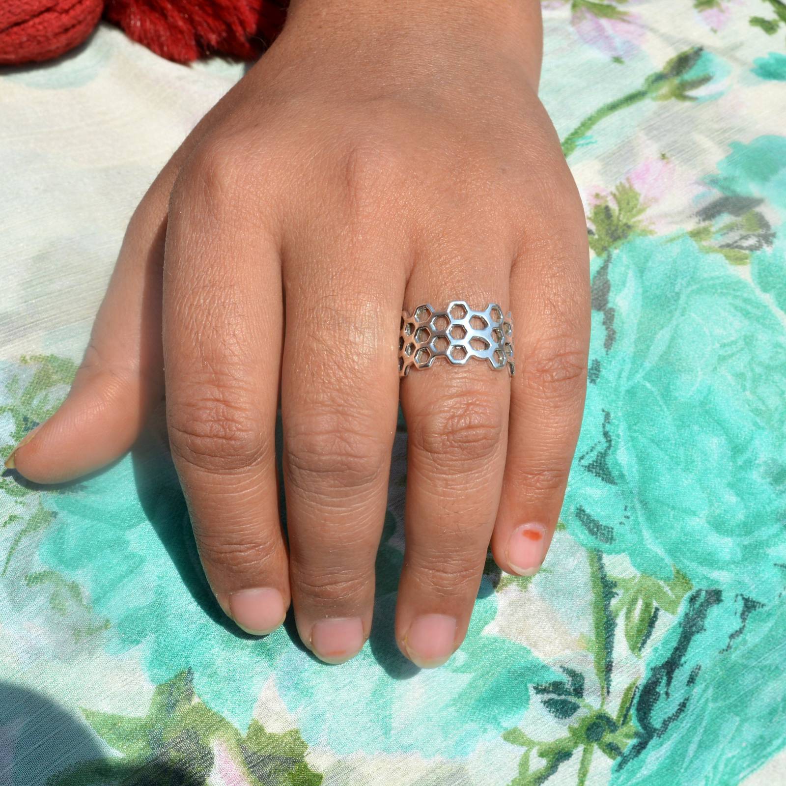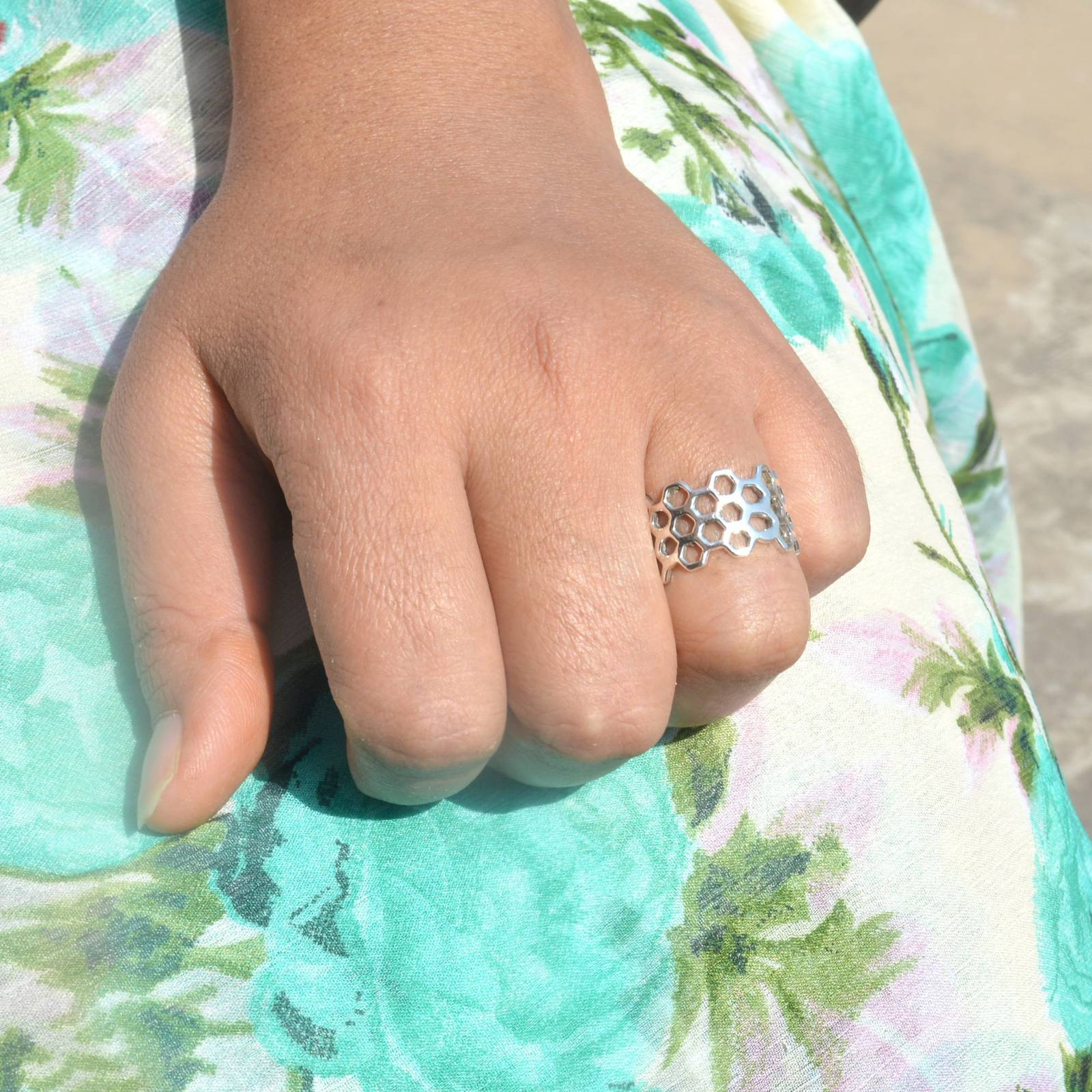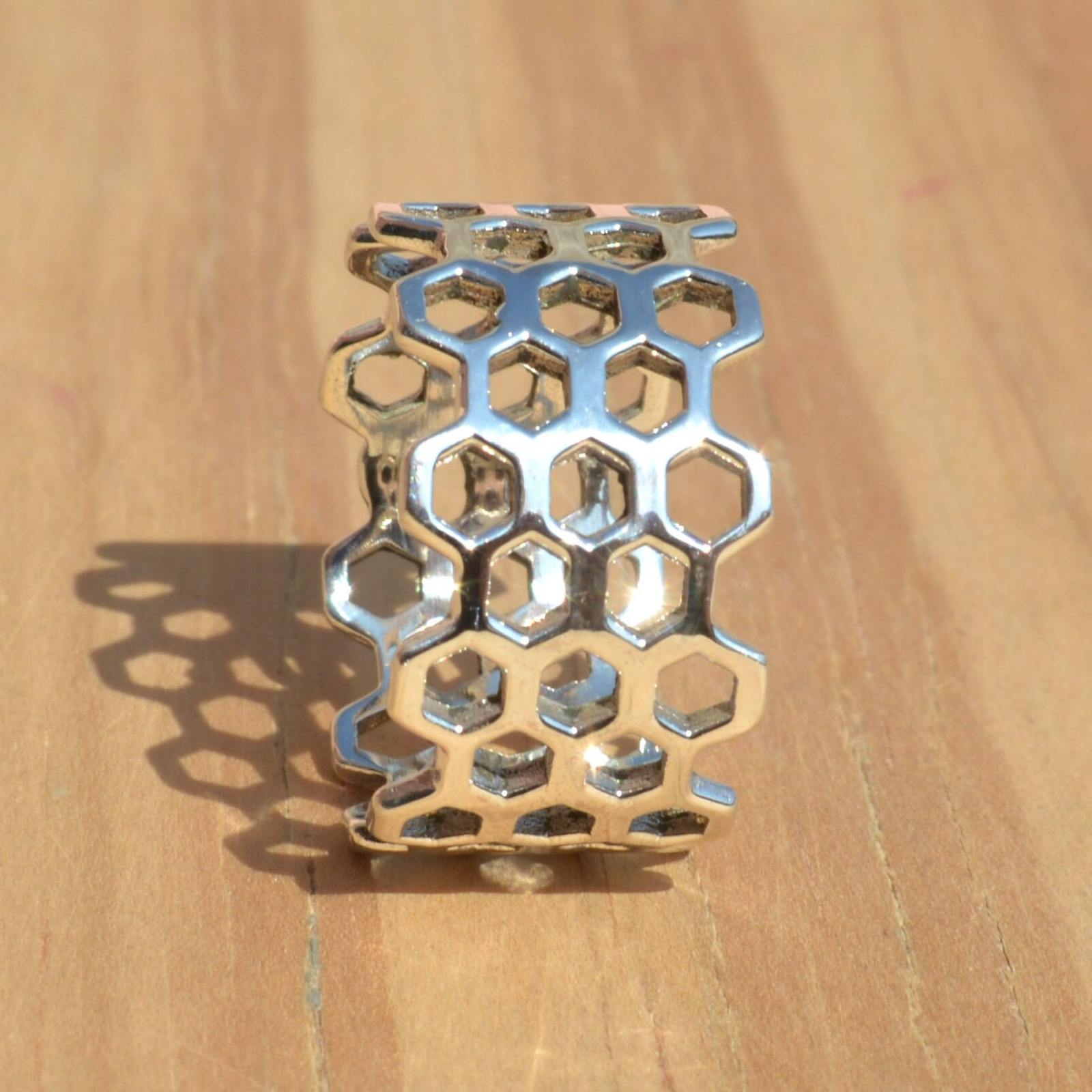 Honeycomb Ring Sterling Silver Band Ring Woman Thumb Ring Handmade Nature Ring