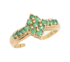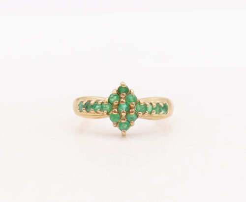14K GOLD Vintage Ring Minimalist Solid Square Inlay Emerald Sz 7 GR907