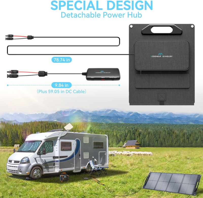?MORE FLEXIBLE DETACHABLE POWER HUB?The detachable power hub allows you replace charging devices in a cool area stay away from the sun. The output ports are not waterproof, so the hub will keep the output ports away from water damage. Even the hub is damaged, you can relpace the power hub only rather than the whole solar panel.