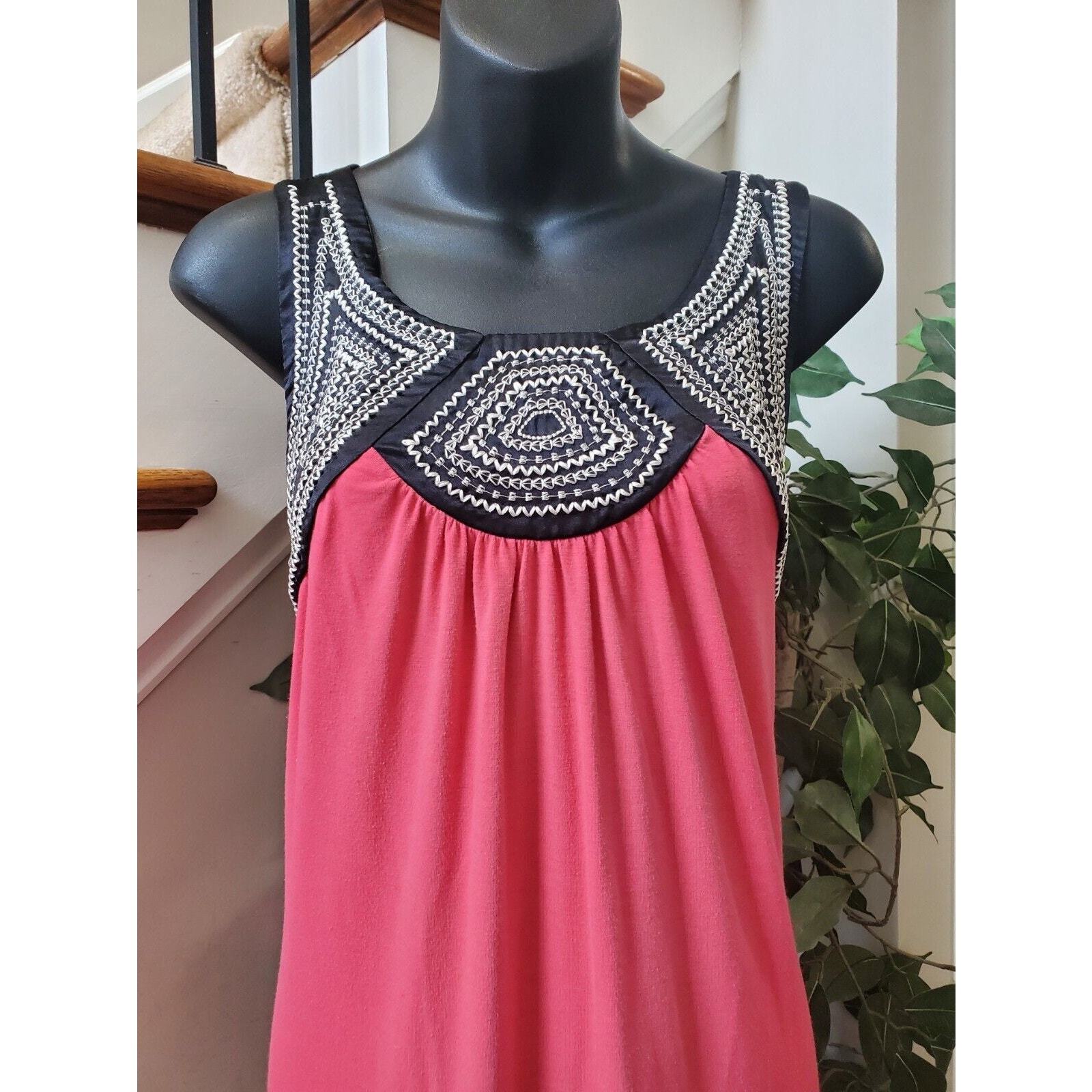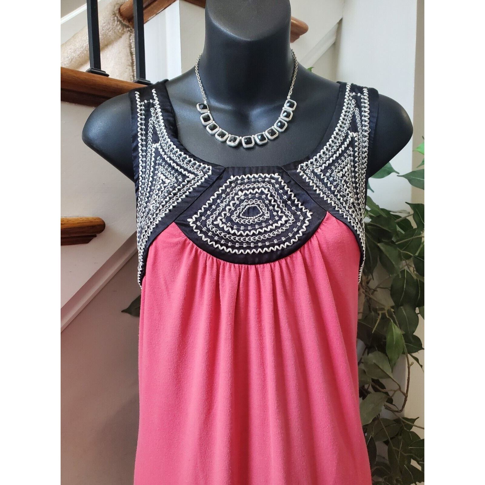 This beautiful maxi dress from New Directions is a must-have for any fashion-savvy woman. With its striking colorblock pattern and embroidered accents, it's perfect for both casual and formal occasions. The dress features a sleeveless design and a round neckline with a collar, along with a pullover closure for easy wear.