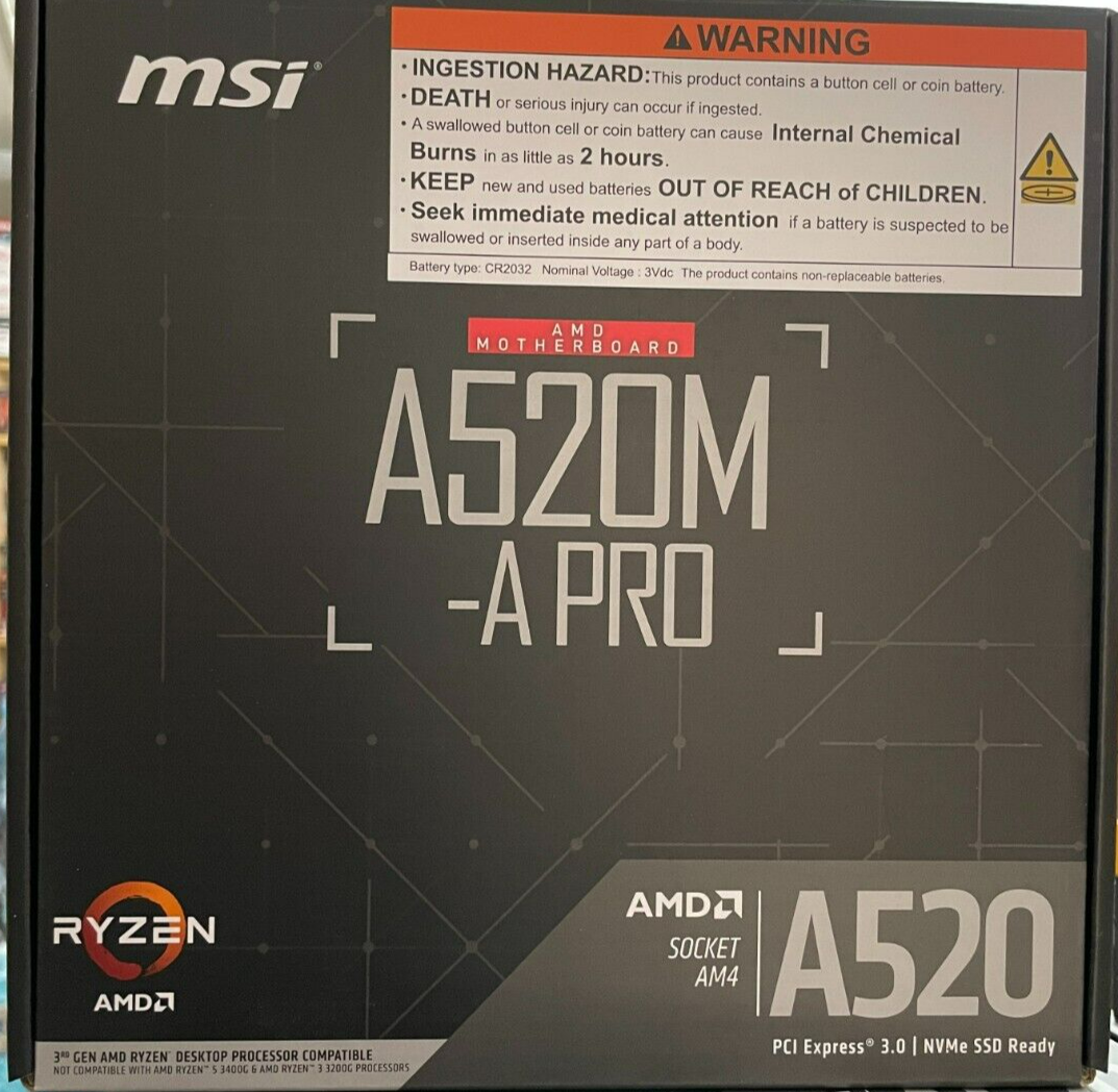 MSI - A520M-A PRO - AMD Ryzen 5000 AM4 DDR4 PCIe 3.0 Micro-ATX Motherboard