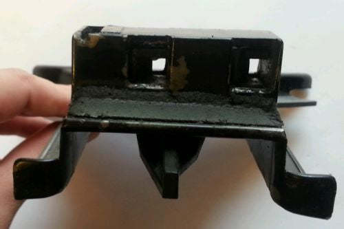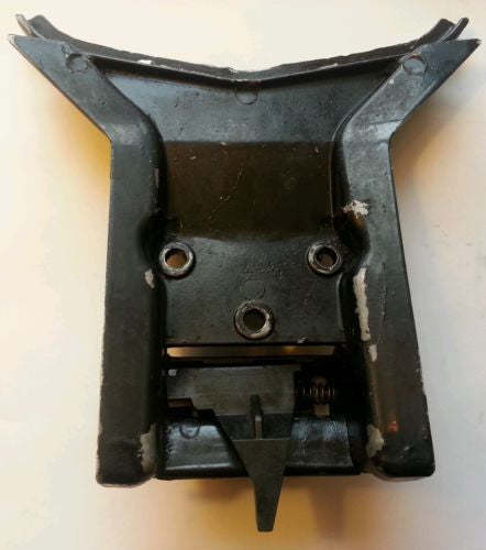 This is the lower latch bracket for the front cowling hood cover plate. It is held on by 3 bolts and this piece attaches to the front cover. This item is in very good condition.