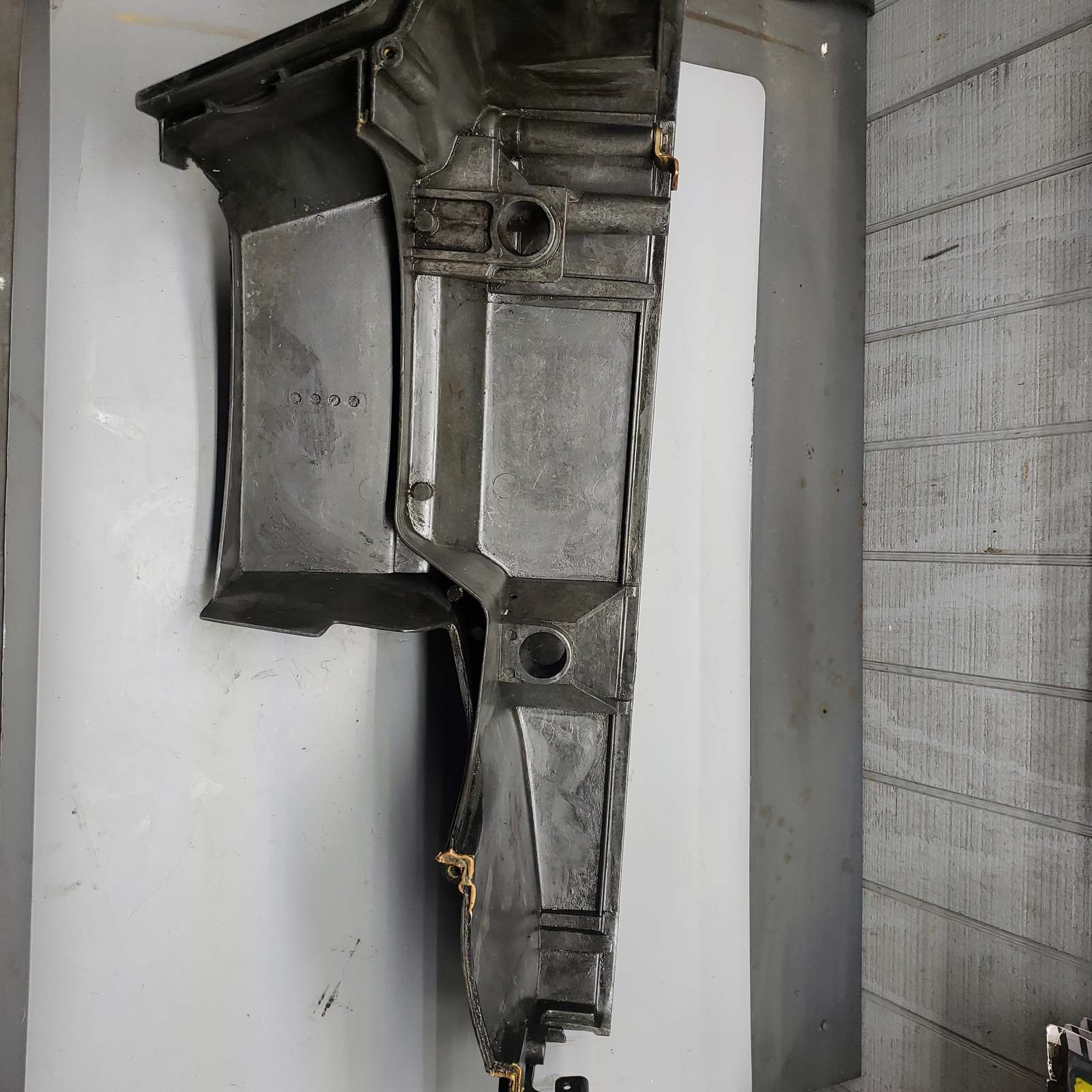 This is the port side lower cowl assembly from a 200 HP EFI Mercury motor. This part is in very good working condition. This part retails at $479.20. This comes off of a 1988 Mercury 200 HP boat. The serial number for this motor was: OC125844. This part came off of a motor that developed low compression. The part number is 7523A 2. These parts should fit on several boat years and models but research is vital to ensure purchase of proper part.