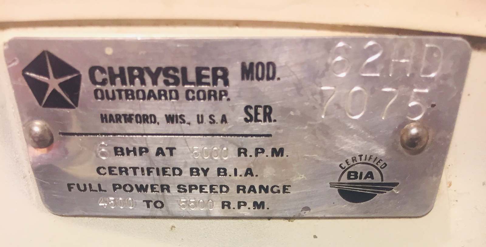 Chrysler 1973 6 Hp Model # 62HD Serial # 7075 Had a 90/90 cold Compression. Oil was drained and no water was present. Shifted really good. Recoil worked good.
