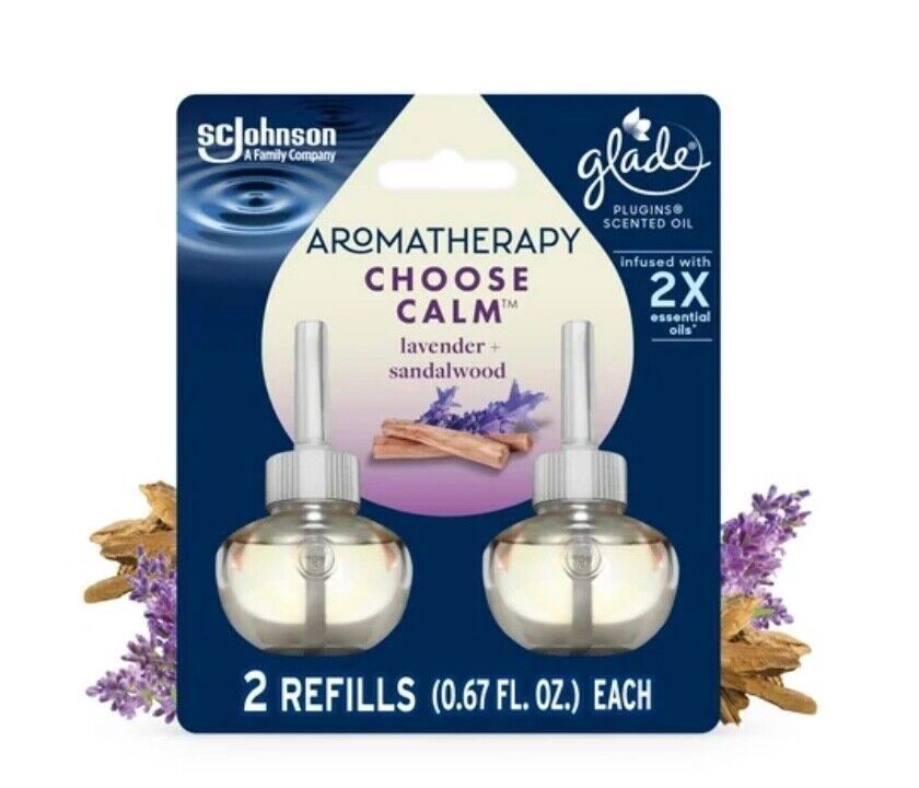 Glade Plugins Scented Oil Refill, Aromatherapy, Choose Calm, Lavender and Sandalwood, Qty 2