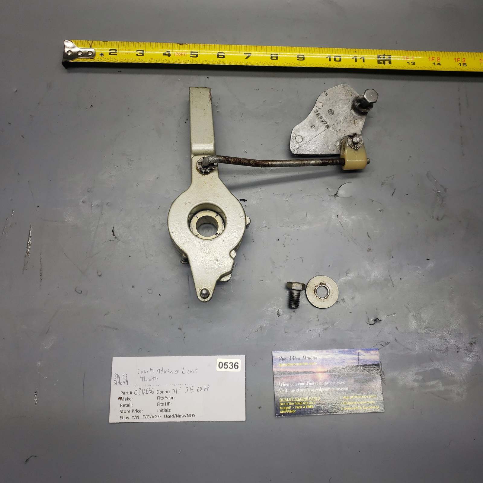 Part Description: 1971 Johnson Evinrude 0316666 316666 382776 0382776 Spark Advance Lever Throttle 60Hp