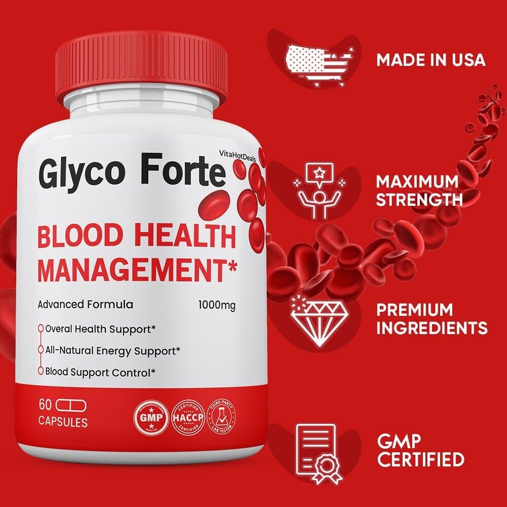 2 Pack Glyco Forte Capsules Blood Support, GlycoForte Glyco Support Pills