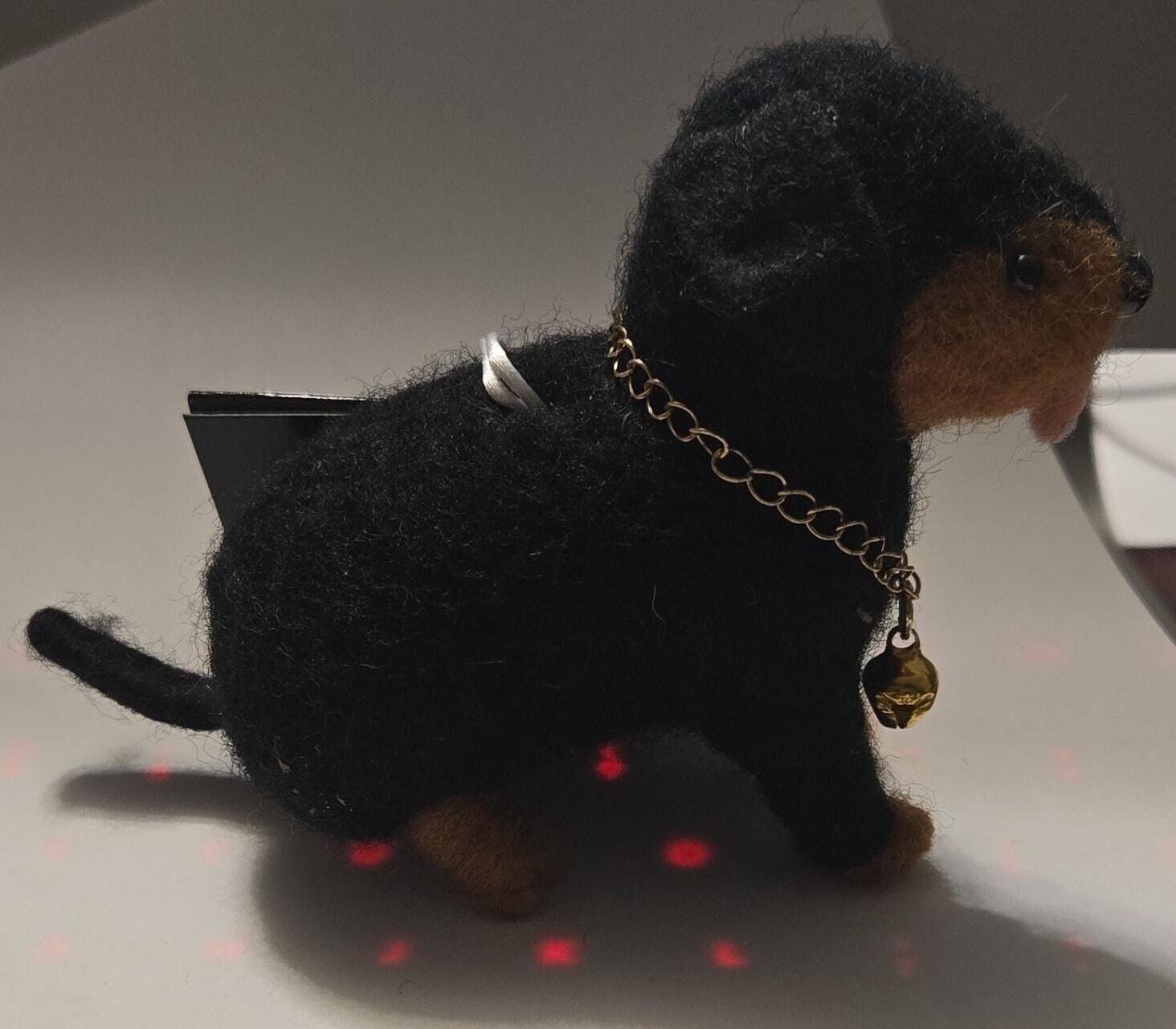 Celebrate the howl-idays with a fuzzy friend by including this Rottweiler With Jingle Bell Ornament. This ornament is shaped like a sitting Rottweiler with beaded eyes and their tongue hanging out of their mouth. Around their neck, they wear a chain collar embellished with a jingle bell for a dash of seasonal spirit. Hang it on your Christmas tree by the white string next to pictures of your own perfect pup!