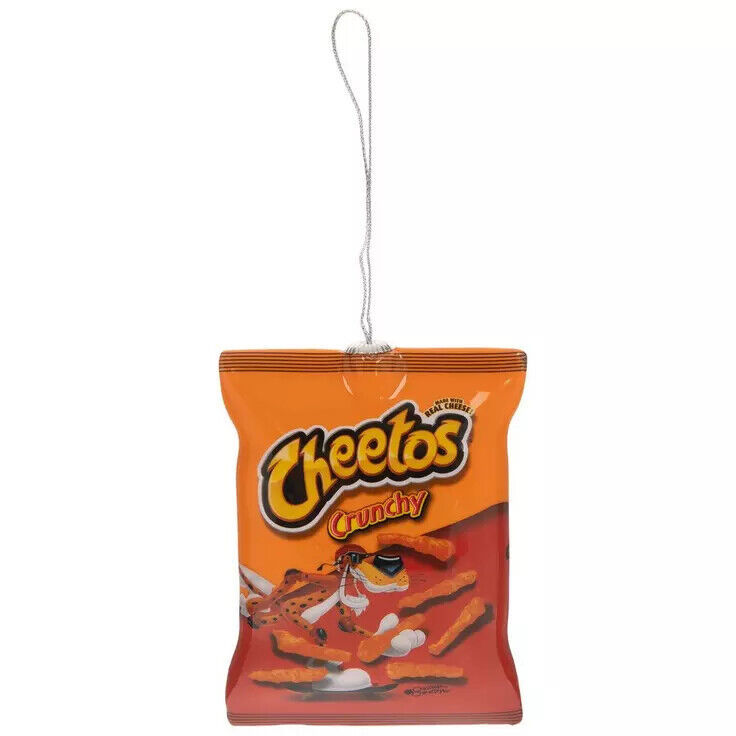 Fill out your Christmas tree with a full-bodied presentation! Crunchy Cheetos Ornament comes in the shape of a Cheetos bag with realistic brand labeling and imagery. Hang it by its silver string, and use this ornament to contrast traditional reindeer, candy canes, and snowmen for a fun-filled Christmas look.