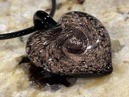 Heart Pendant Cord Necklace Iridescent Black and 49 similar items
