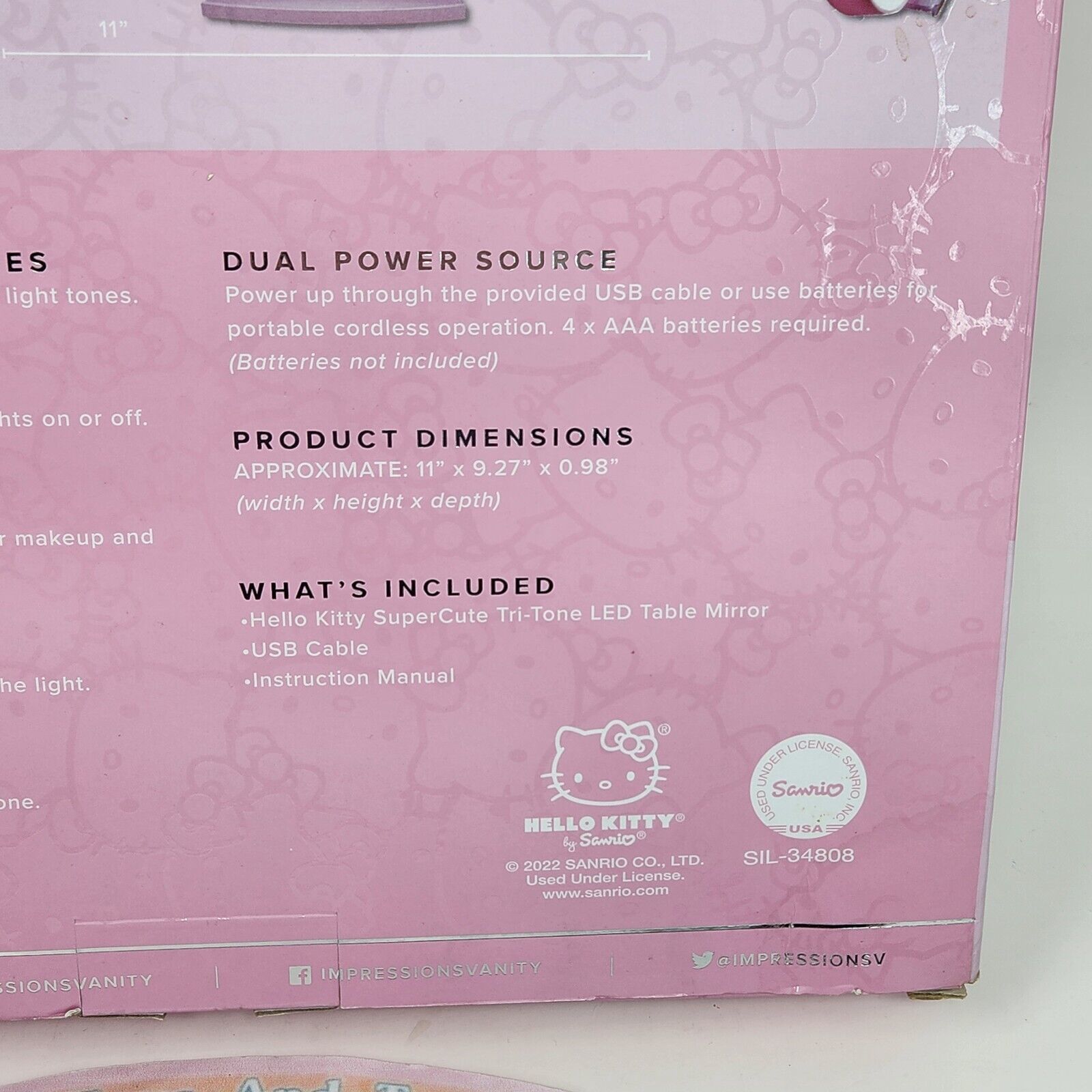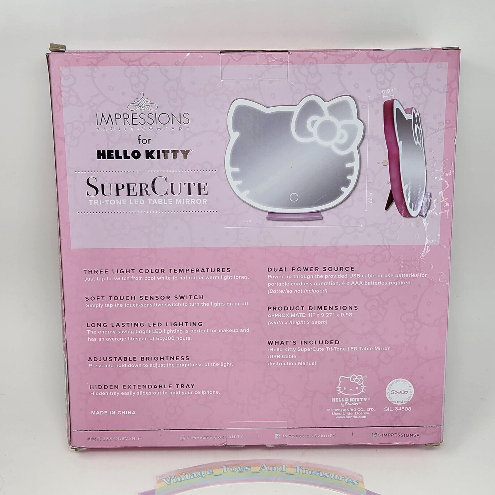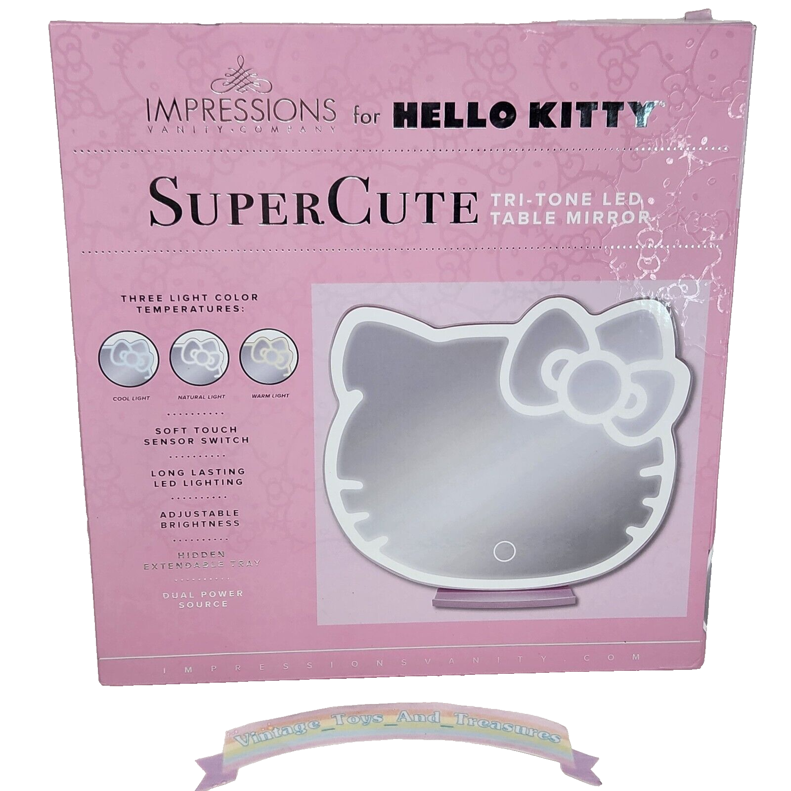 IMPRESSIONS VANITY HELLO KITTY TRI TONE LED TABLE MAKEUP MIRROR NEW N BOX SANRIO