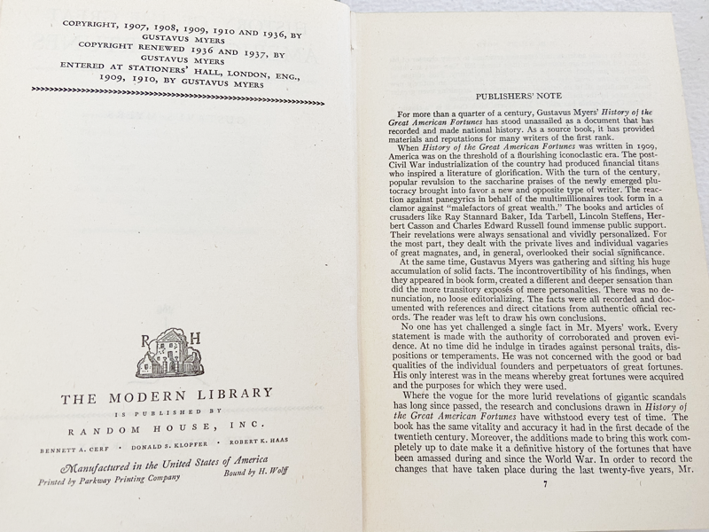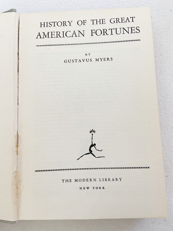 1936 HC HISTORY OF THE GREAT AMERICAN FORTUNES The Modern Library Series. by Gustavus Myers
