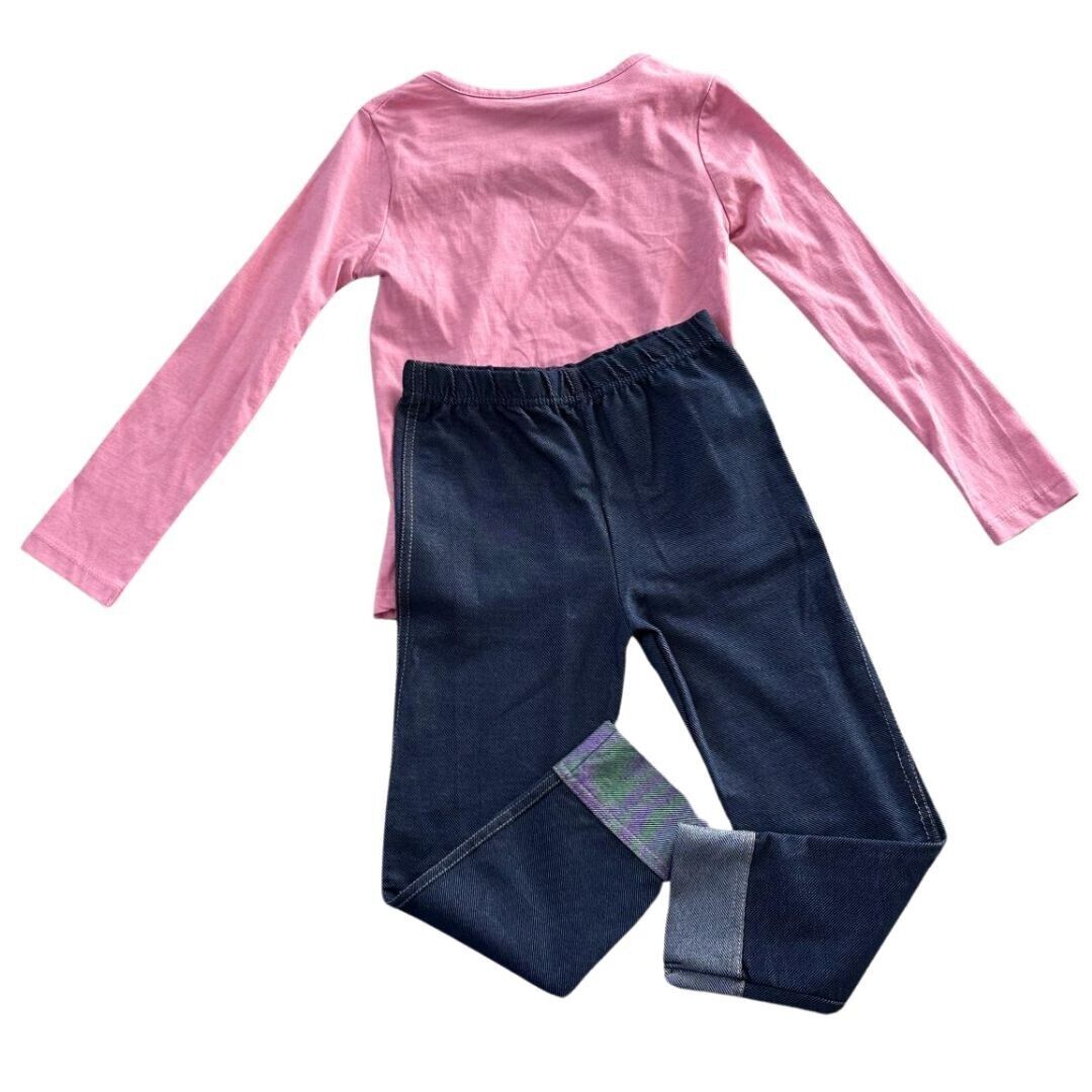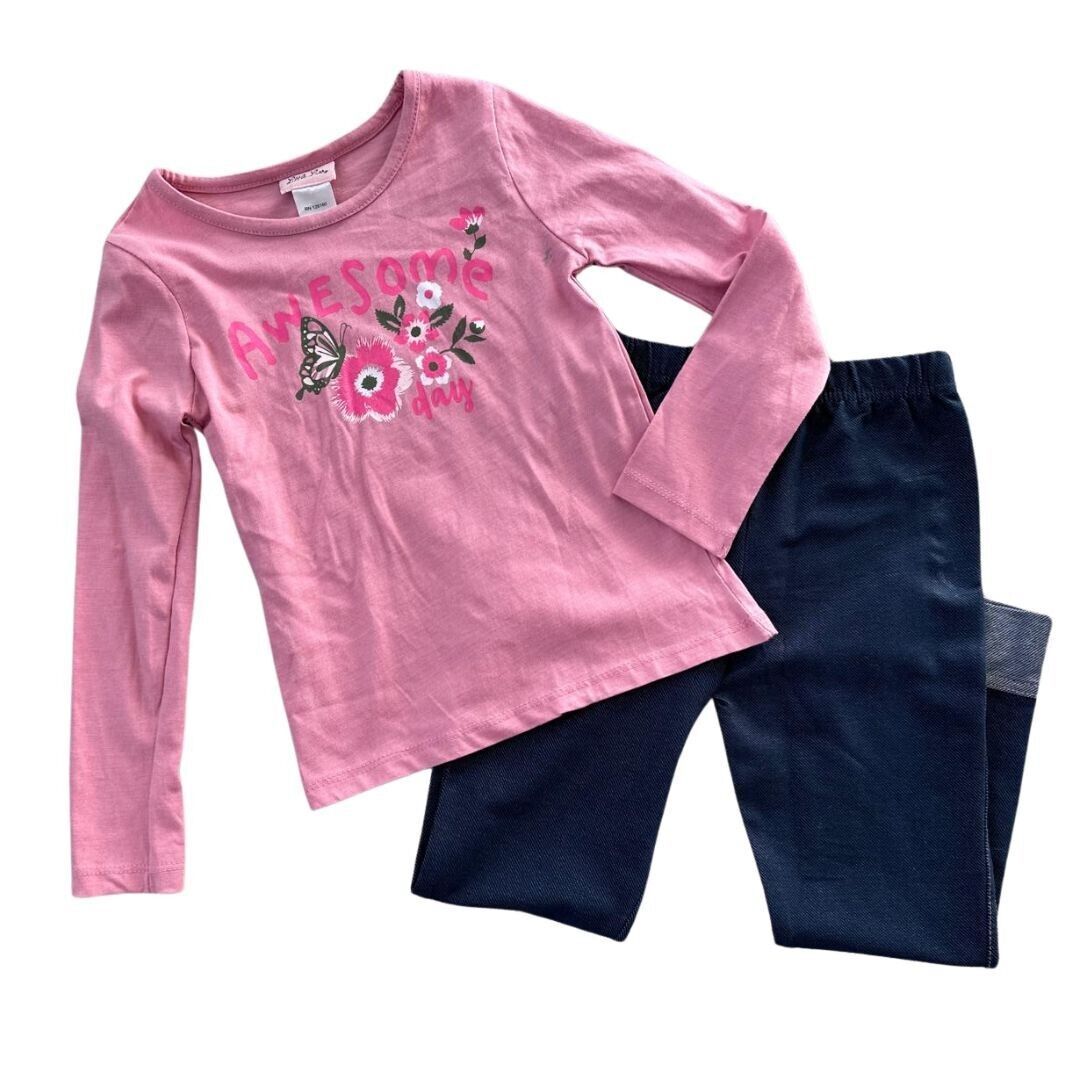 Girls' Long Sleeve Pink "Awesome Day" Shirt & Navy Leggings Outfit Set - Size 6