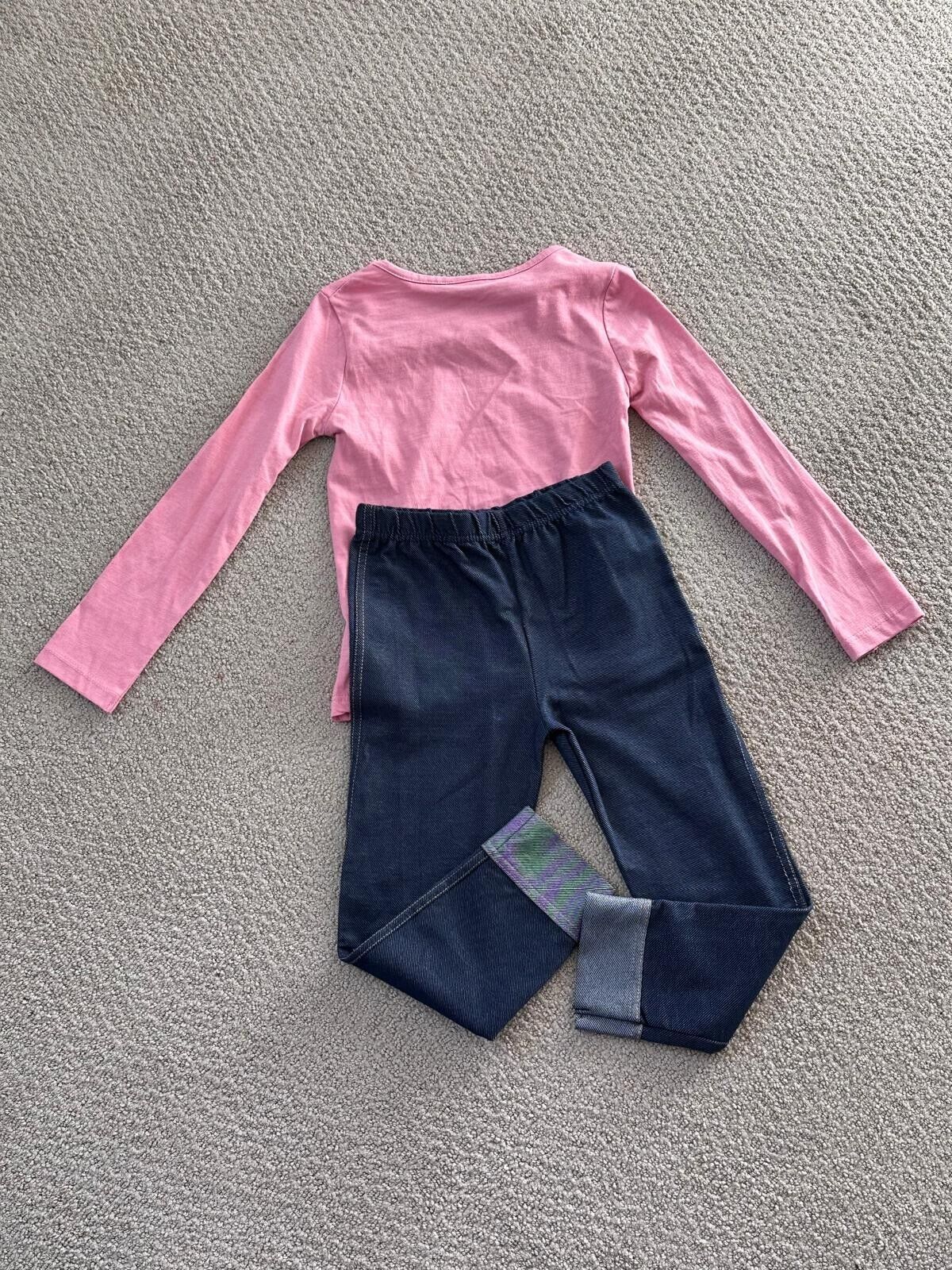 Bottoms: Navy leggings with a stretchy waistband for a comfortable fit.