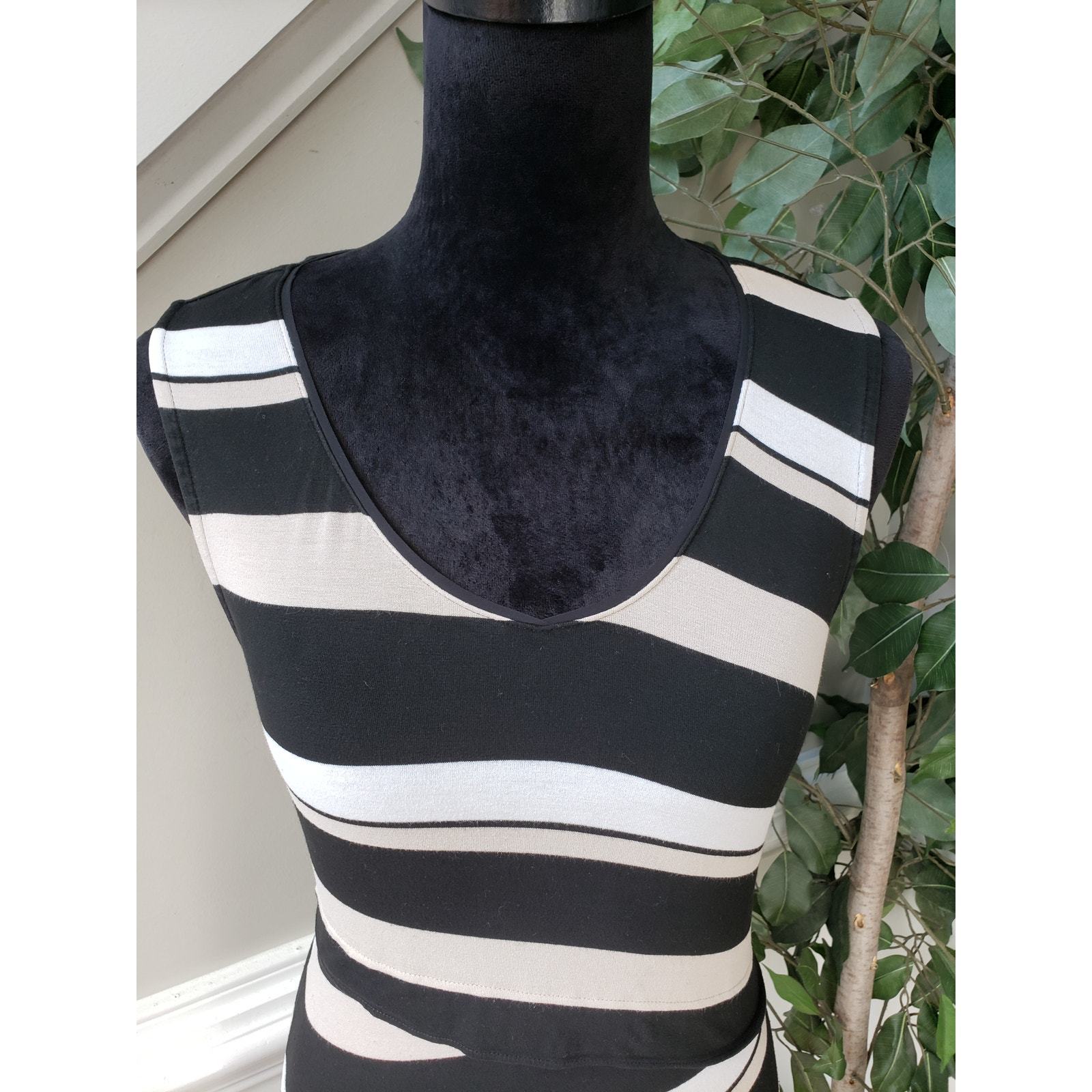 White House Black Market Tunic Top Womens S White Striped Knit Dropped Waist