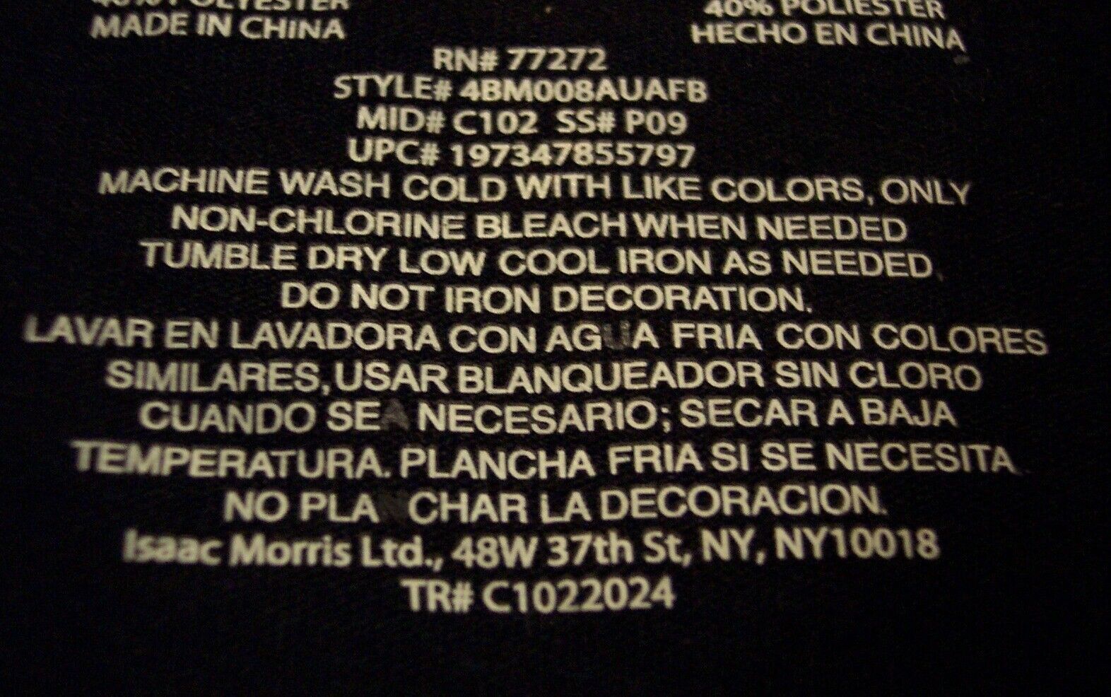 | Garment Care: |