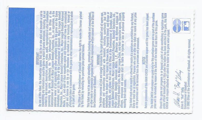 2002 ALDS American League Division Series Game 3 Season Ticket stub A's @ Twins