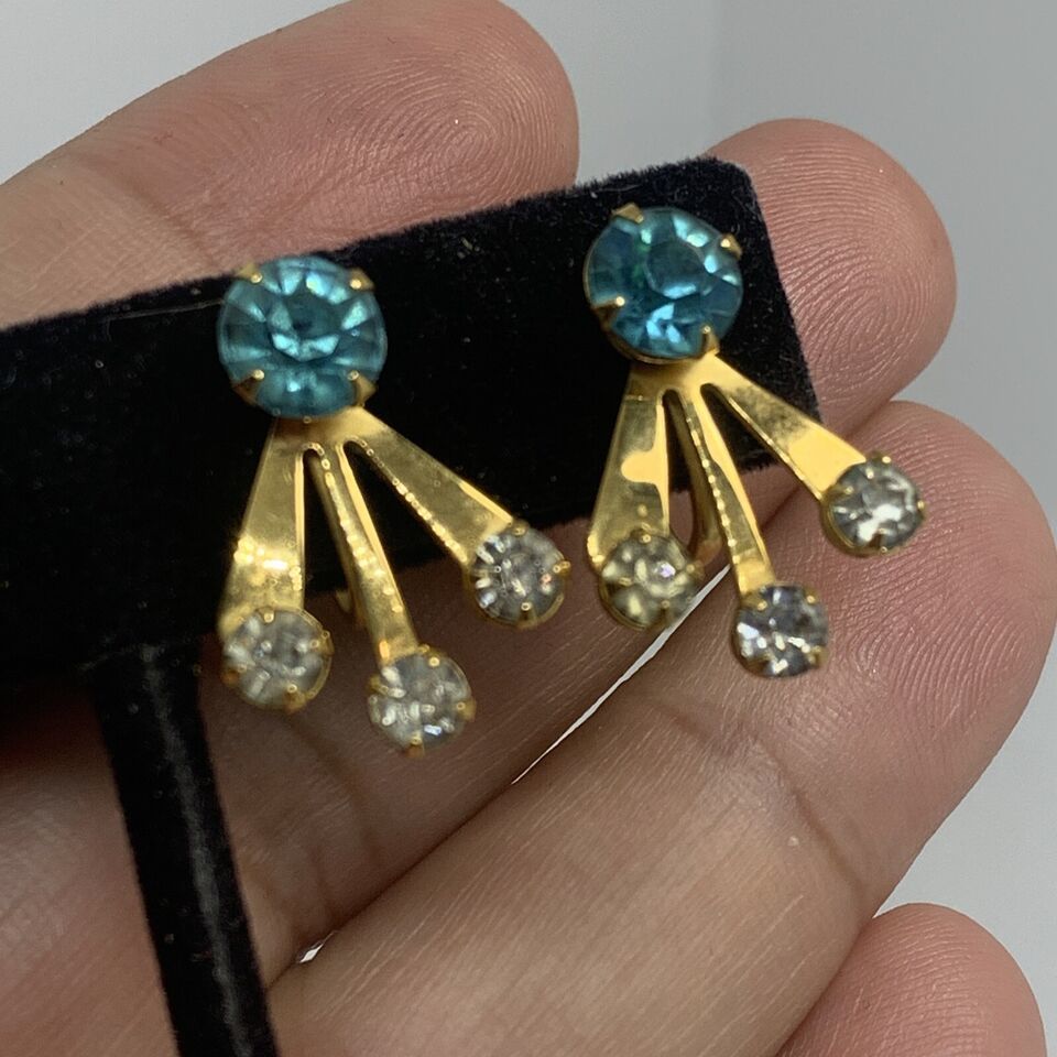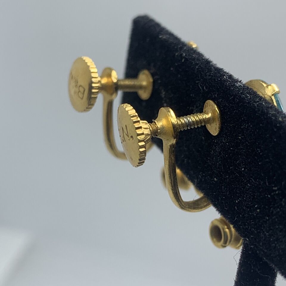 Vintage B.N. Bugbee Niles Rhinestone Earrings Screw Back Aquamarine Clear .75". Condition is Pre-owned. Shipped with USPS First Class.
