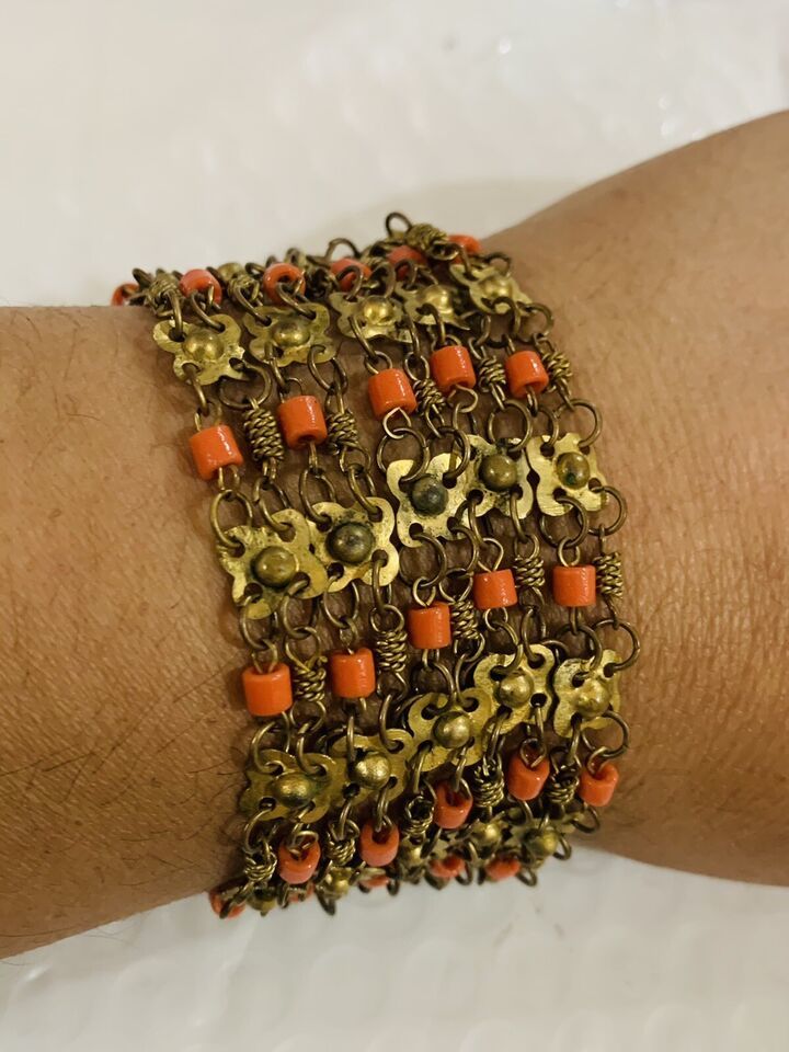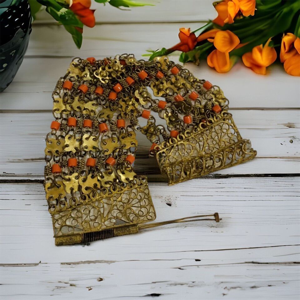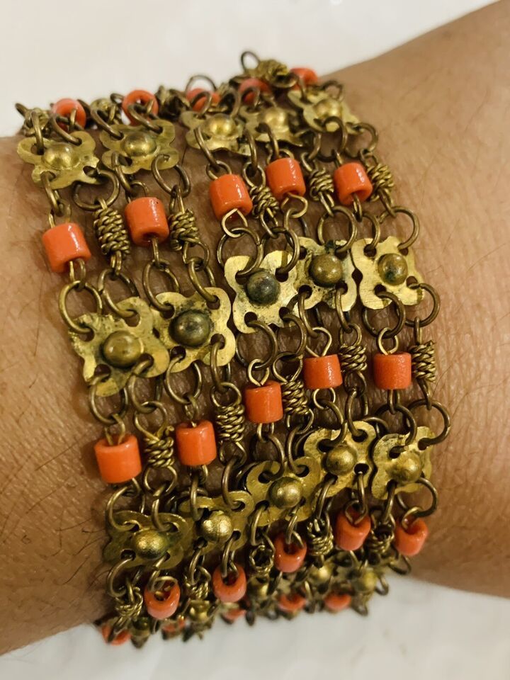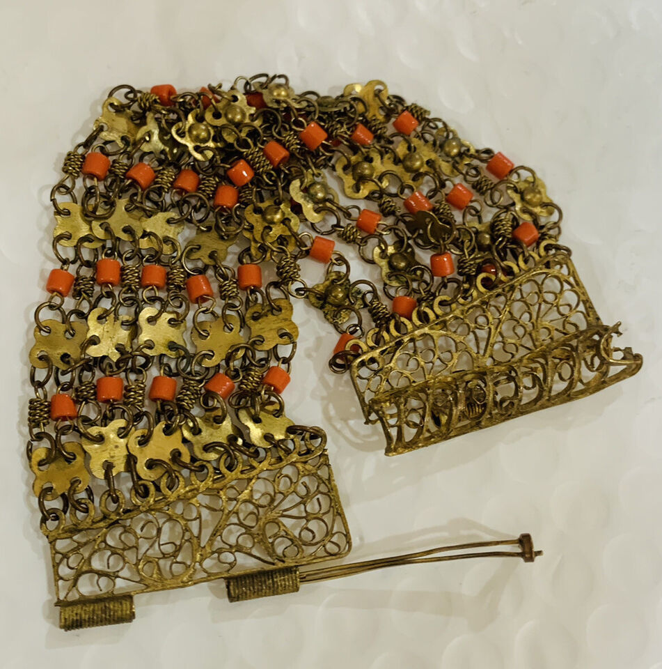 Vintage Tribal Boho Middle Eastern Egyptian Revival Gold Gilt Filigree Bracelet.
