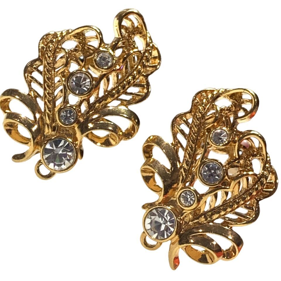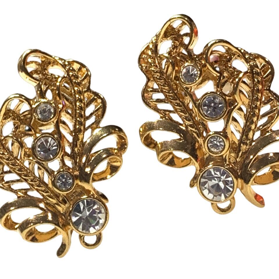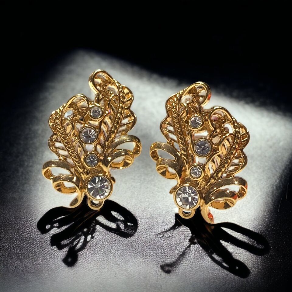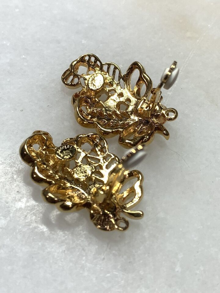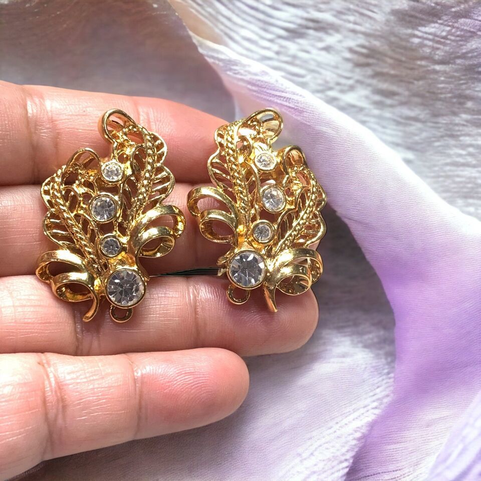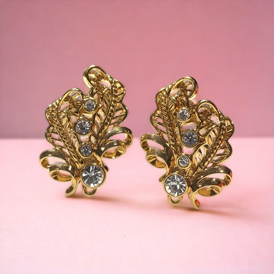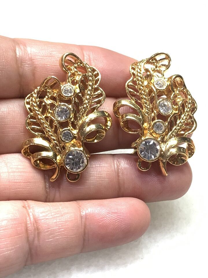 Vintage jose barrera for avon signed rhinestone gold tone clip earrings