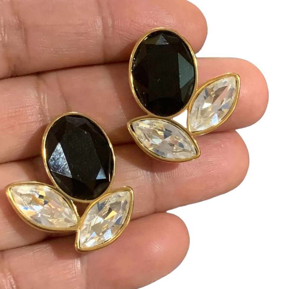 Black and White Rhinestone Gold Tone Costume Earrings by Monet.