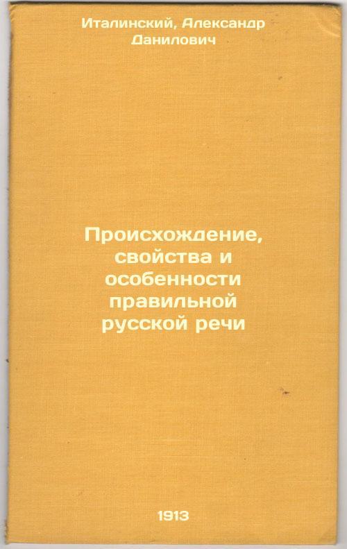 Short description: In Russian. Italinsky, Alexander Danilovich. The Origins, Properties, and Features of Correct Russian Speech: Moscow: A Type of I.D. Sytin, 1913. Please feel free to contact us for a detailed description of the copies available. SKU3803995