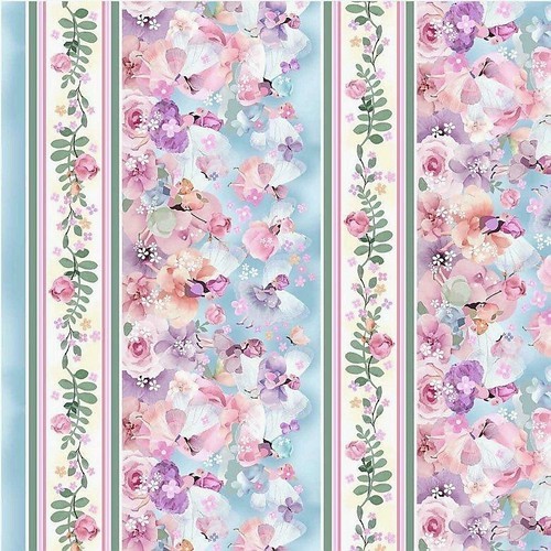Cotton Border Stripe Unicorn Dreams Flowers Fabric Print by the Yard D678.12