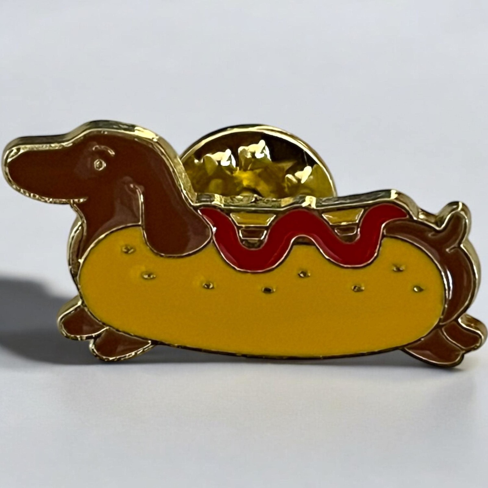 Adorable Cartoon Hotdog Dachshund Enamel Pin Badge - Vibrant Colorful Brooch ...