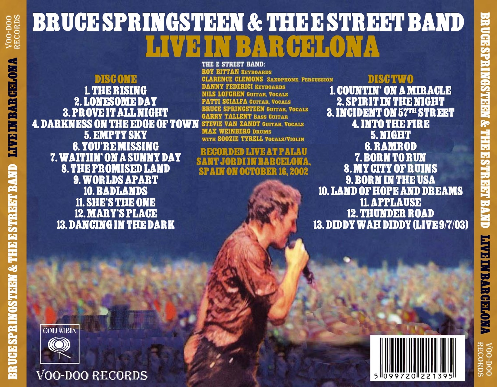 Exciting 2-CD set of Bruce Springsteen's high energy show at in Barcelona, Spain on October 16, 2002. Full show in perfect sound quality. Includes high-quality full-color artwork, with disc art printed directly onto disc. Looks and sounds amazing.
