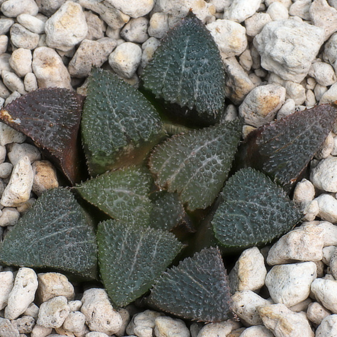 Grow the captivating Haworthia truteriorum Hybrids, featuring delicate, gray, semilucent, and white leaves on compact, bonsai-style rosettes!