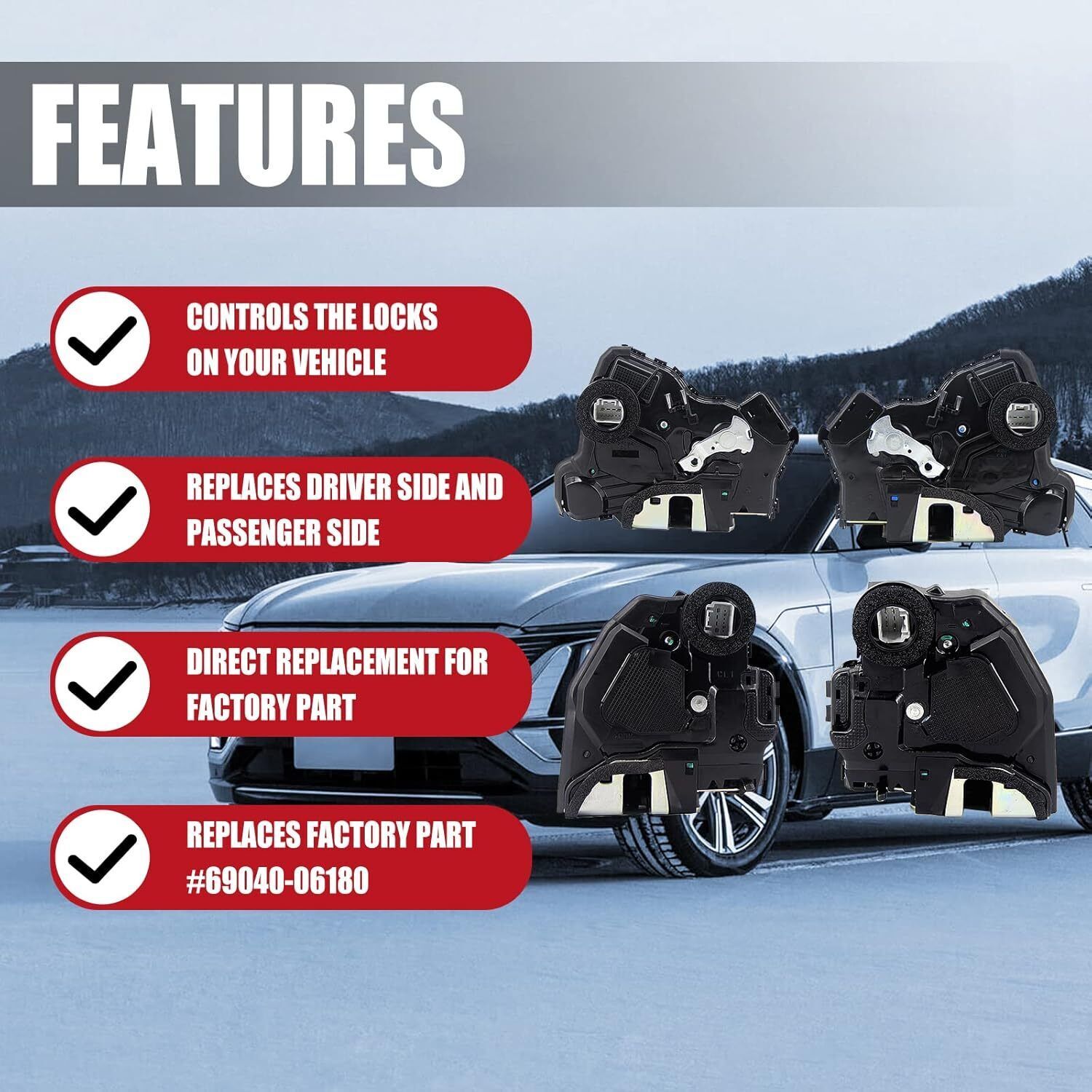 DOOR LOCK ACTUATOR - Located inside the doors, the power door lock actuator controls the locks on your vehicle. Each door contains it's own actuator. If a door on your vehicle will not lock or unlock a bad actuator is likely the problem. This 4pcs actuators fits Front Left Front Right Rear Left Rear Right COMPATIBLE WITH FOLLOWING VEHICLES -2013-2016 Lexus ES300h | 2010-2016 Lexus GX460 | 2010-2015 Toyota 4Runner | 2007-2016 Toyota Camry | 2009-2013 Toyota Corolla | 2008-2013 Toyota Highlander | 2012 Toyota Prius C | 2012-2014 Toyota Prius V | 2013-2015 Toyota RAV4 | 2008-2015 Scion xB, please check the fitment in the product description below REPLACE PART NUMBERS - 69040-06180, 69040-0C050, 69040-33221, 69040-AA050, 69040-42250, 931401.Please check the part numbers whether it suits your vehicle before purchasing OEM DESIGN DIRECT FIT - Quality materials advanced technology used, meets or exceeds OEM standards. Even though this is not a genuine Toyota Door Latch Lock Actuator, but it works even better and lasts longer. Save yourself times and money by replacing Door Latch Lock Actuator on your Toyota RAV4 yourself. BUY WITH CONFIDENCE - All products have been 100% tested before delivery, If you have any problem with our Door Latch Lock Actuator Motor for Toyota Corolla, feel free to contact us, we will sort things out together.