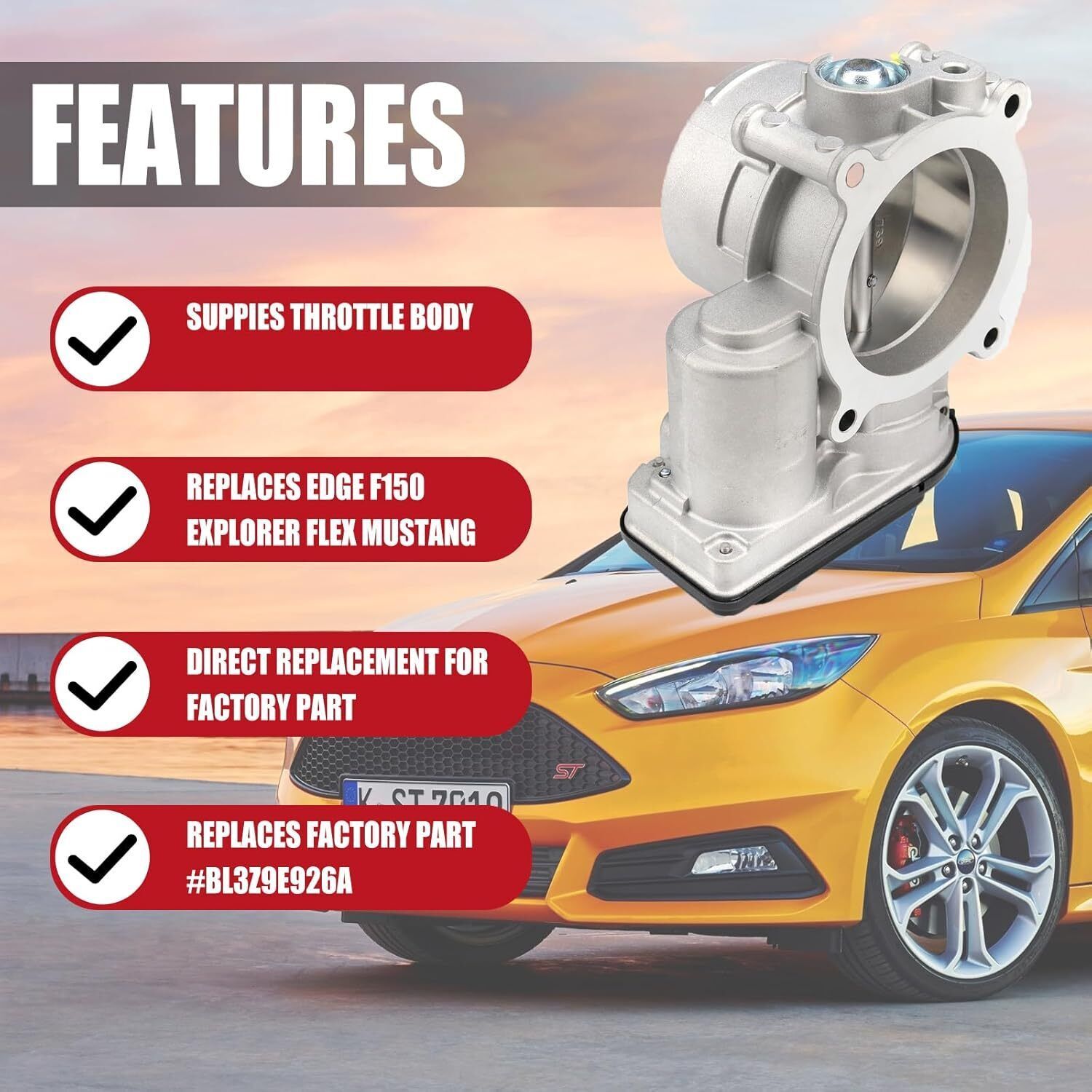THROTTLE BODY - Professional micro control chip inside help to keep the engine from idling instability;Upgraded sensors provide a sensitive engine control;High quality motor inside ensuring each throttle body?s durability and long lasting. COMPATIBLE WITH FOLLOWING VEHICLES - Throttle Body 3.7L 3.5L Compatible with 11-17 EDGE F150 / 11-19 EXPLORER / 13-19 FLEX / 11-17 MUSTANG / 15-18 TRANSIT 150 250 350 350HD / 13-18 MKT / 13-16 MKS MKZ / 11-18 MKX, please check the fitment in the product description below REPLACE PART NUMBERS - BL3Z9E926A,BL3Z9E926B,BL3Z 9E926 BFC,47966. Please check the part numbers whether it suits your vehicle before purchasing. OEM DESIGN DIRECT FIT - Quality materials advanced technology used, meets or exceeds OEM standards. Even though this is not a genuine Ford Throttle Body, but it works even better and lasts longer. Save yourself times and money by replacing Throttle Body on your Ford Edge yourself. BUY WITH CONFIDENCE - All products have been 100% tested before delivery, If you have any problem with our Throttle Body for Lincoln MKT, feel free to contact us, we will sort things out together.