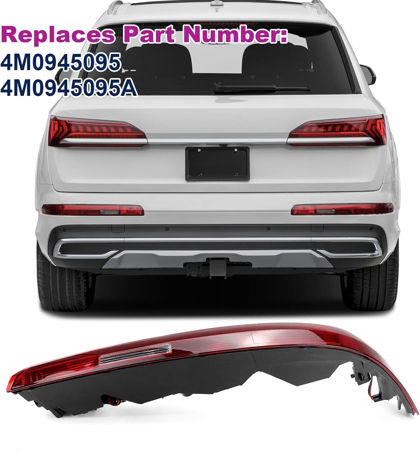 Right Passgenger Side Rear Bumper Reflector Tail Light Fog Lamp Compatible with 2016-2022 Audi Q7 Replace 4M0945096A