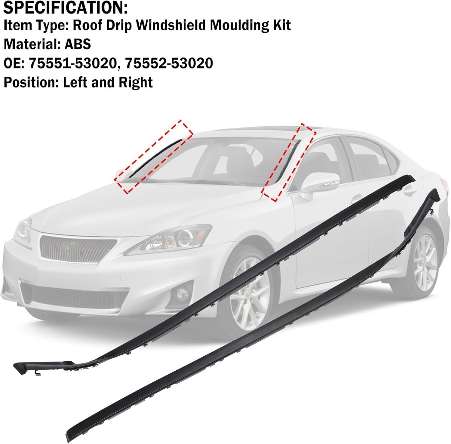 Driver and Passenger Side Windshield Moulding Kit Compatible with 2006-2013 Lexus IS250 IS350 is-F Replaces 75551-53020 75552-53020 75545-53011