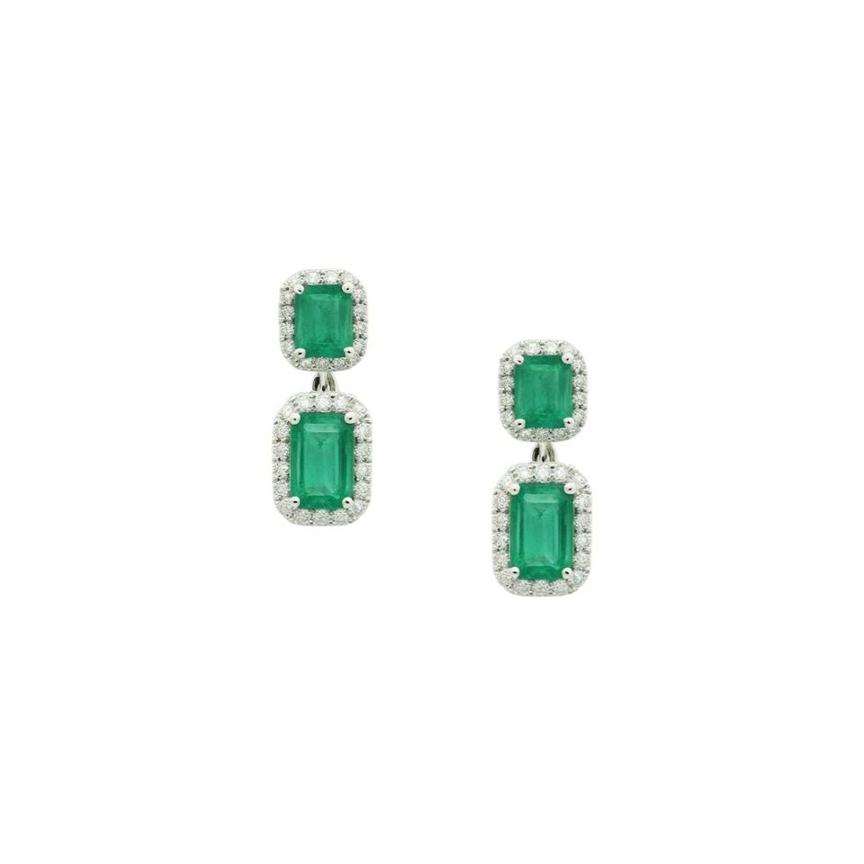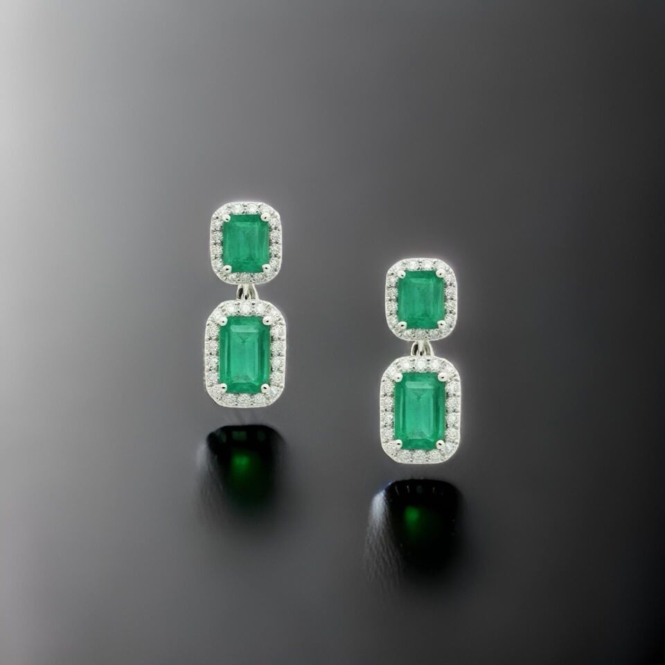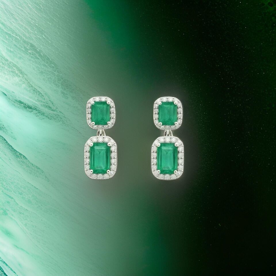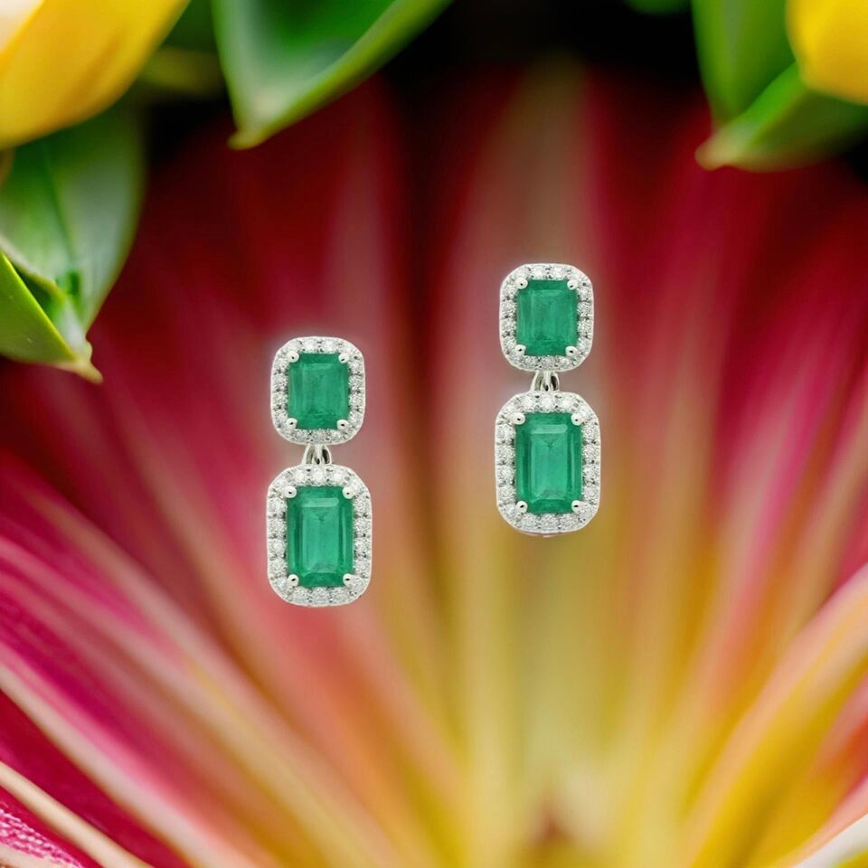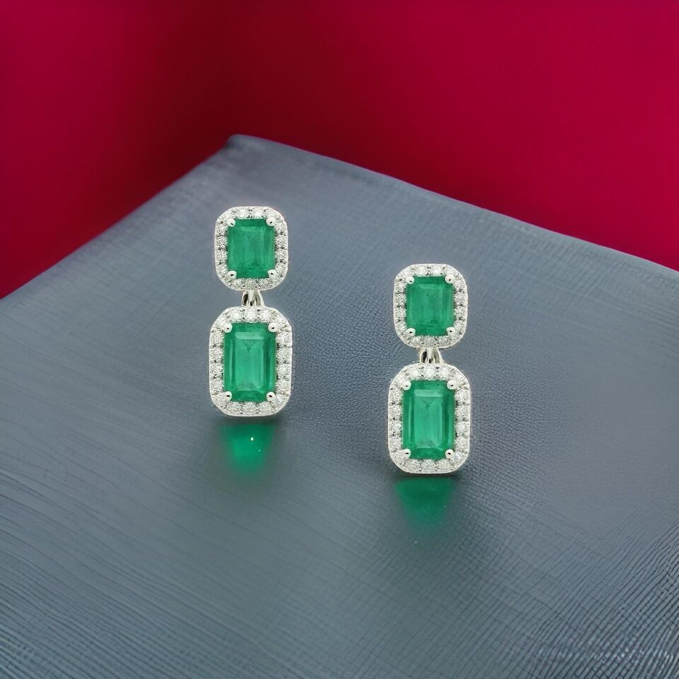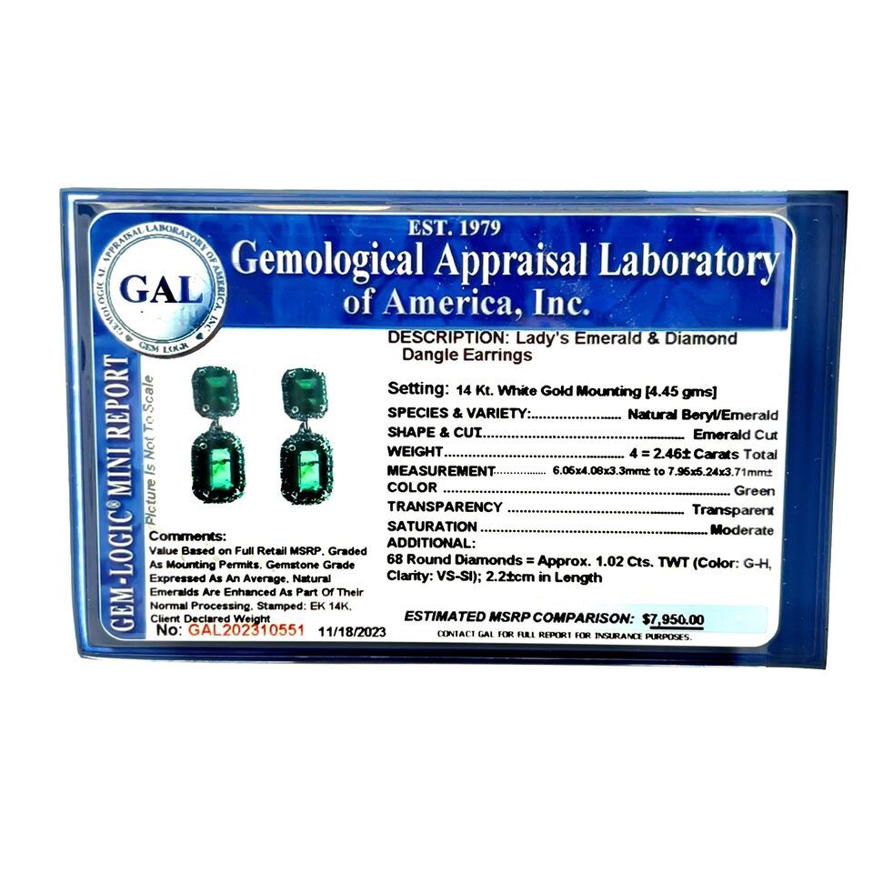Authenticity Guarantee Natural Emerald Diamond Earrings 14k Gold 3.48 TCW Ce...
