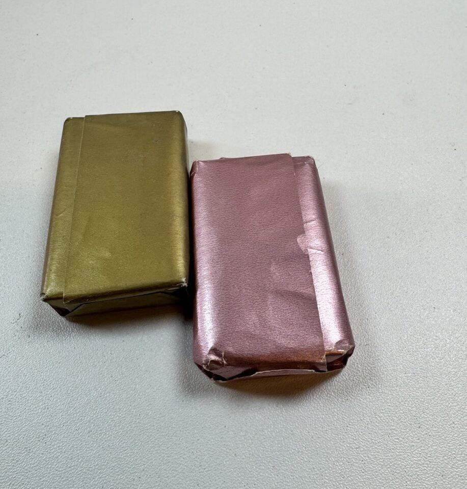 This listing offers two vintage Dial AT-7 deodorant bath and beauty soap bars in a mini size of 0.2 oz each. These original bars are perfect for collectors of advertising and soap/detergent memorabilia. The multi-color design of the bars features a sign-type advertisement for the Dial brand. Made in the United States, these bars are a great addition to any collection.